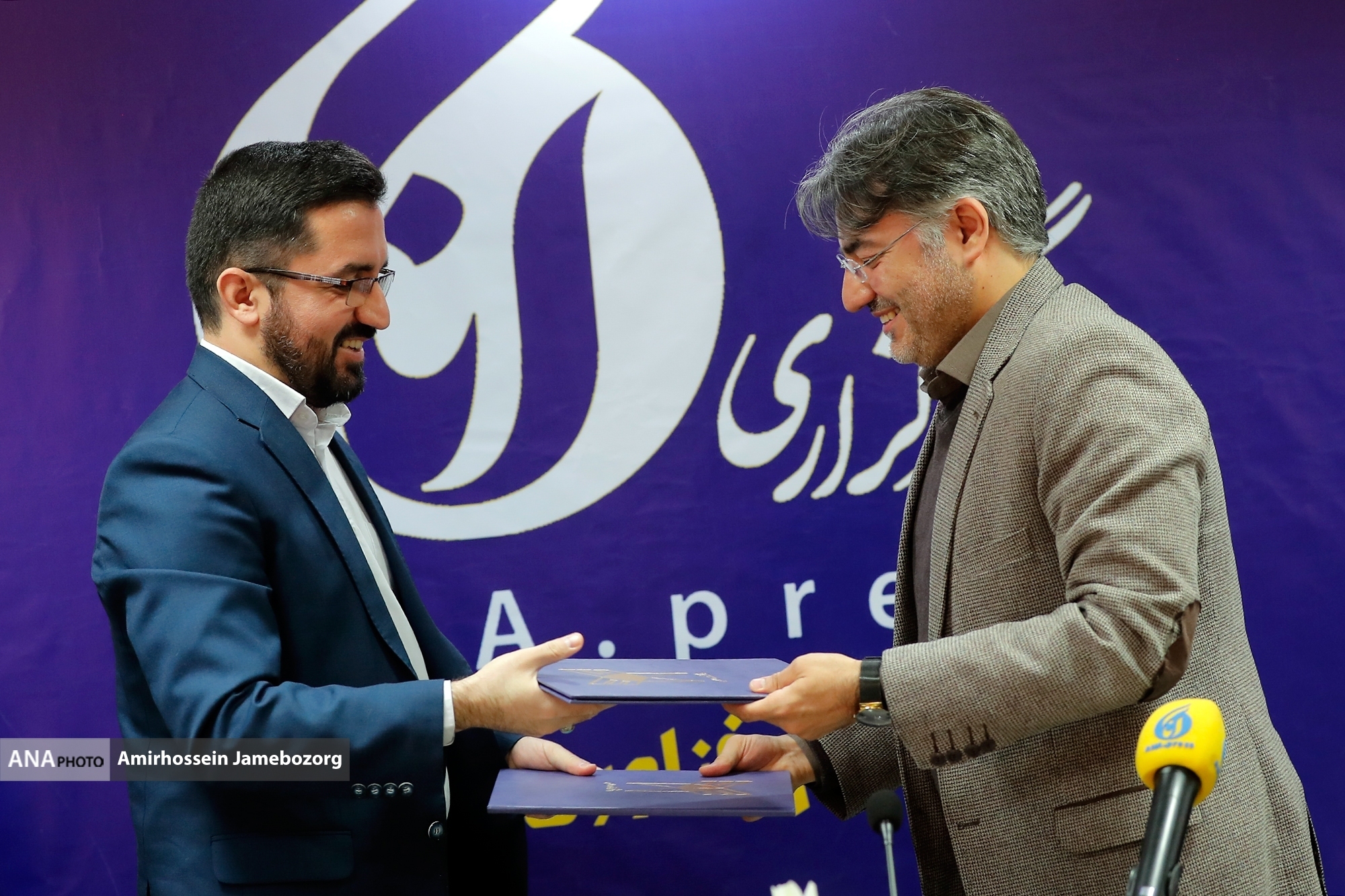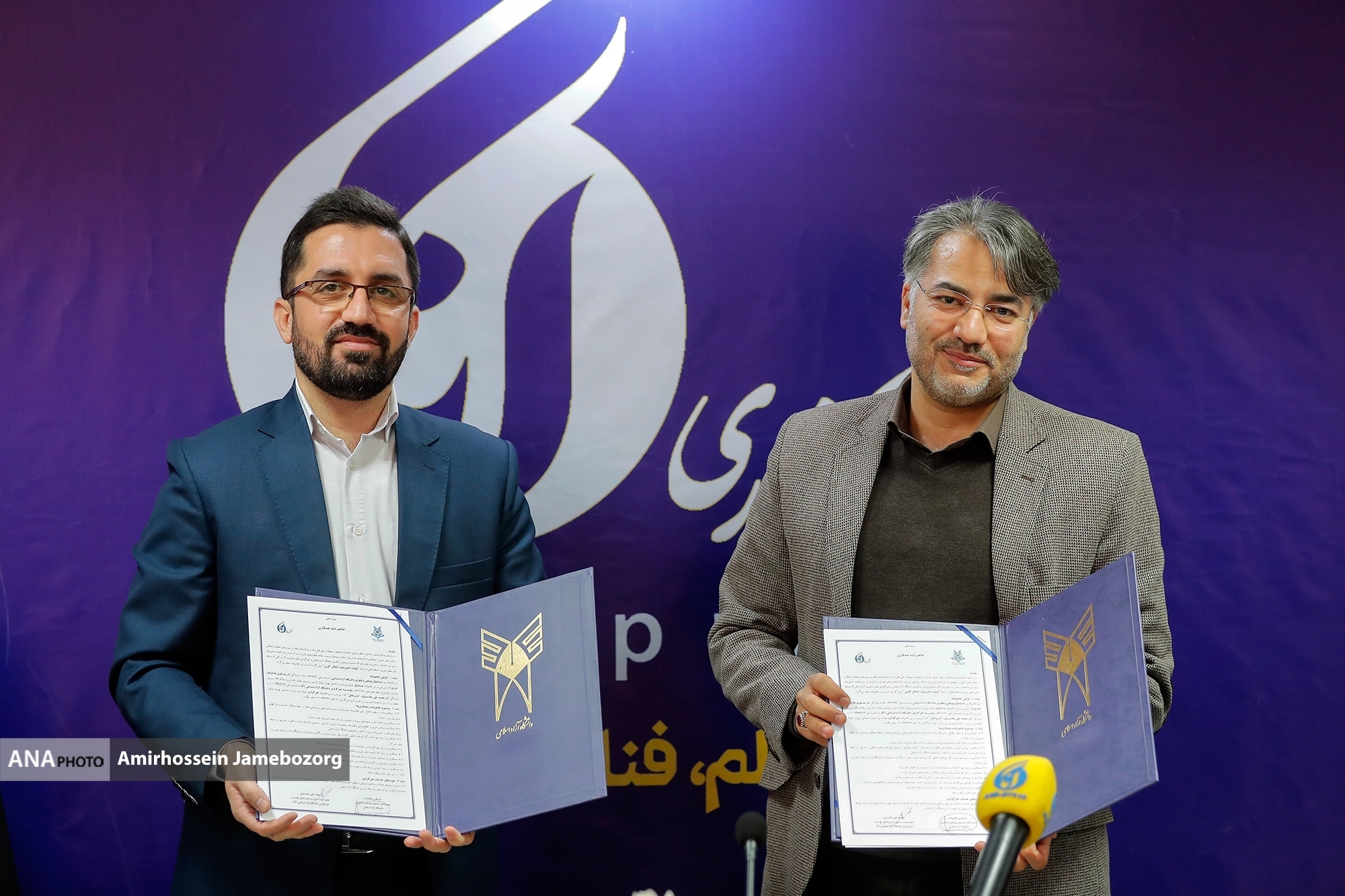 تحميل جميع الصورإنعقد إجتماع تمخّض عنه التوقيع على مذكرة تفاهم بين وكالة آنا للعلوم والتكنولوجيا وصندوق البحوث والتكنولوجيا بالجامعة الاسلامية الحرّة، وبحضور كل من محمد علي مقدسيان المدير التنفيذي لوكالة آنا، و عسكري غلامزاده المدير التنفيذي لصندوق البحوث والتكنولوجيا بالجامعة الاسلامية الحرة، وحاجي بور مدير التنمية والعلاقات العامة للصندوق.