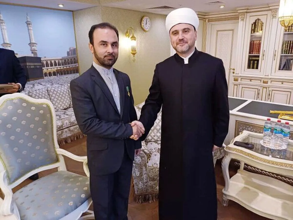 أفادت وکالة آنا الإخباریة، وبقرار من المفتي الأكبر الشيخ رافيل عين الدين، رئيس الدائرة الدينية لمسلمي روسيا الاتحادية، قدم المفتي روشان أبياسوف، نائبه للشؤون الدولية، هذه الوسام للمستشار الثقافي الايراني.