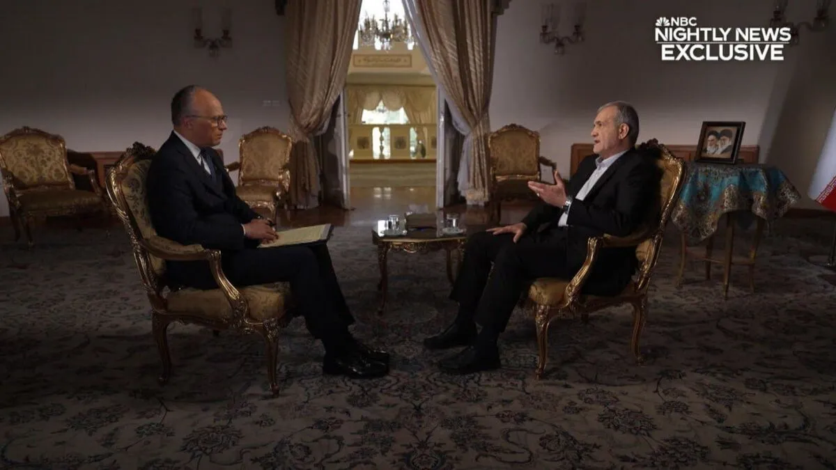 يذكر ان مساعد مدير مكتب رئيس الجمهورية لشؤون الاتصال والاعلام كان قد كتب في منشور، الثلاثاء، على منصة التواصل الاجتماعي "اكس": ستبث الرسالة المهمة للرئيس (مسعود) بزشكيان غدا (الأربعاء) على شبكة "إن بي سي" التلفزيونية الأميركية؛ إيران تريد السلام وخفض التصعيد في المنطقة والعالم وهي مستعدة لمحادثات مشرفة ومتكافئة.