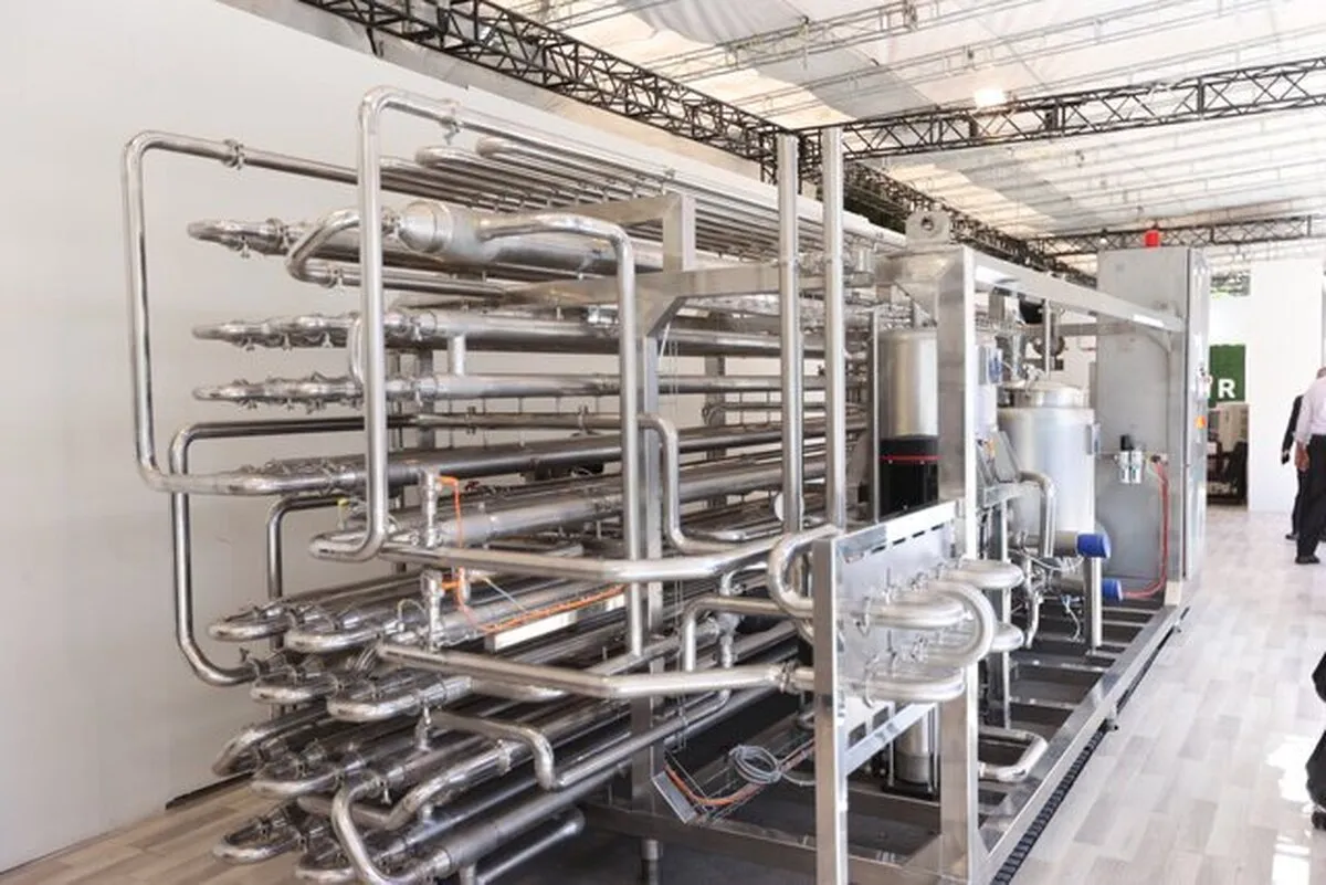 واختار حبيبي أحد الأجهزة التي تم الكشف عنها في المعرض وهو جهاز التعقيم الأنبوبي بتقنية الحرارة العالية جداً (UHT)، قائلاً: "تم تصميم هذه الآلة المتطورة باستخدام تقنية التسخين غير المباشر والكفاءة العالية وتستخدم لتعقيم مجموعة متنوعة من المنتجات، بما في ذلك الحليب والقشدة والحليب المنكه والعصائر".