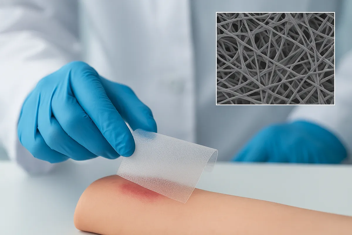 وأوضحت سولوفيوفا أن المادة تتكوّن من بوليمر يُدعى "بولي كابرولاكتون"، وهو بوليمر طبي قابل للتحلل الحيوي، حيث يتم تشكيله في صورة ألياف نانوية بقطر يبلغ 700 ميكرومتر، تضاف إليها الببتيدات الفعالة. وتُطلق هذه الببتيدات تدريجيًا على مدى أسبوعين، مع الحفاظ على فعاليتها ضد البكتيريا وتقليل سُميّتها للخلايا البشرية.