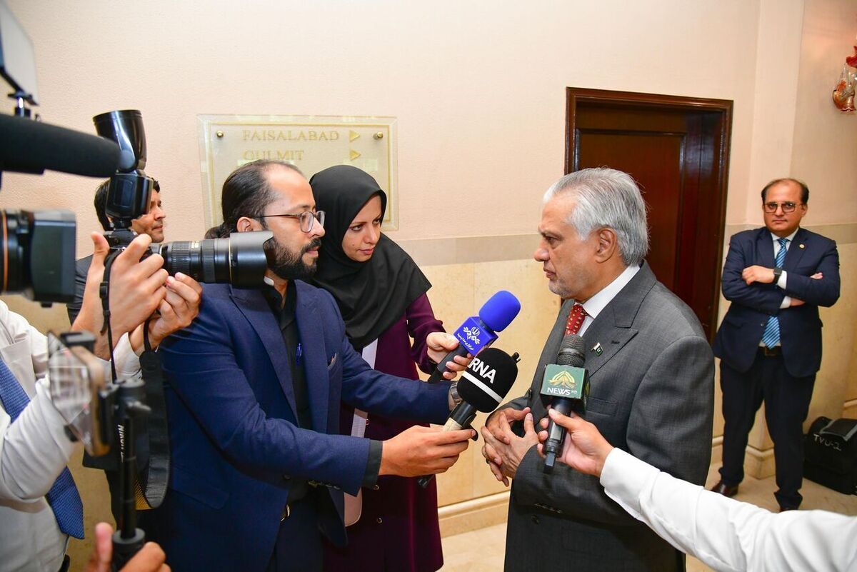 أفادت وکالة آنا الإخباریة، وفي تصريح صحفي عقب لقائه رئيس الجمهورية الإسلامية الإيرانية، مسعود بزشكيان، في إسلام آباد اليوم الأحد، رحّب إسحاق دار بالرئيس الإيراني واصفًا إياه بـ"الأخ العزيز"، مشيرًا إلى أن الجانبين أجريا مشاورات مكثفة خلال الشهر الماضي، لاسيما بعد العدوان الذي شنه الكيان الصهيوني على إيران.