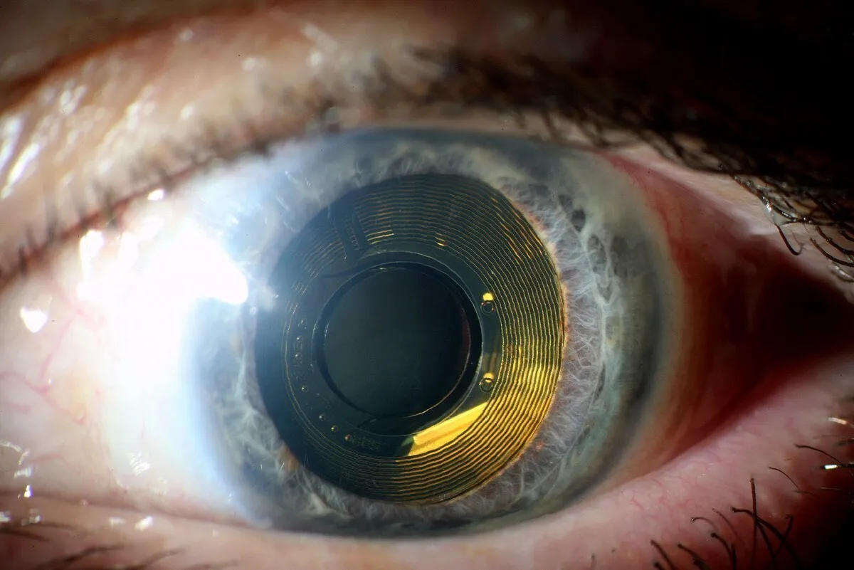 The surgical procedure involves a vitrectomy, in which the eye’s natural gel is removed from between the lens and the retina. The surgeon then inserts a wafer-thin microchip, about the size of a SIM card (2mm x 2mm), beneath the central retina through a small opening.