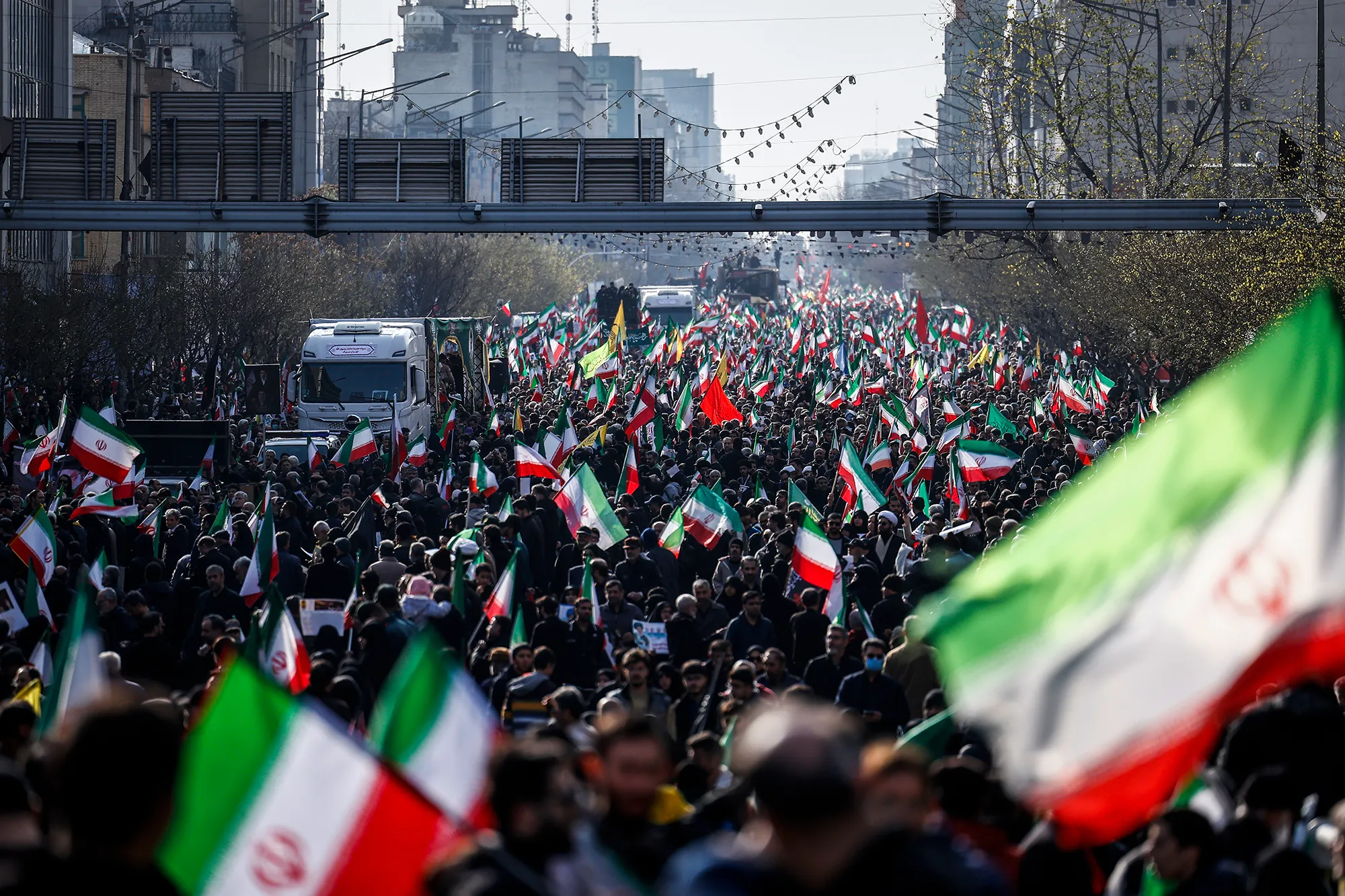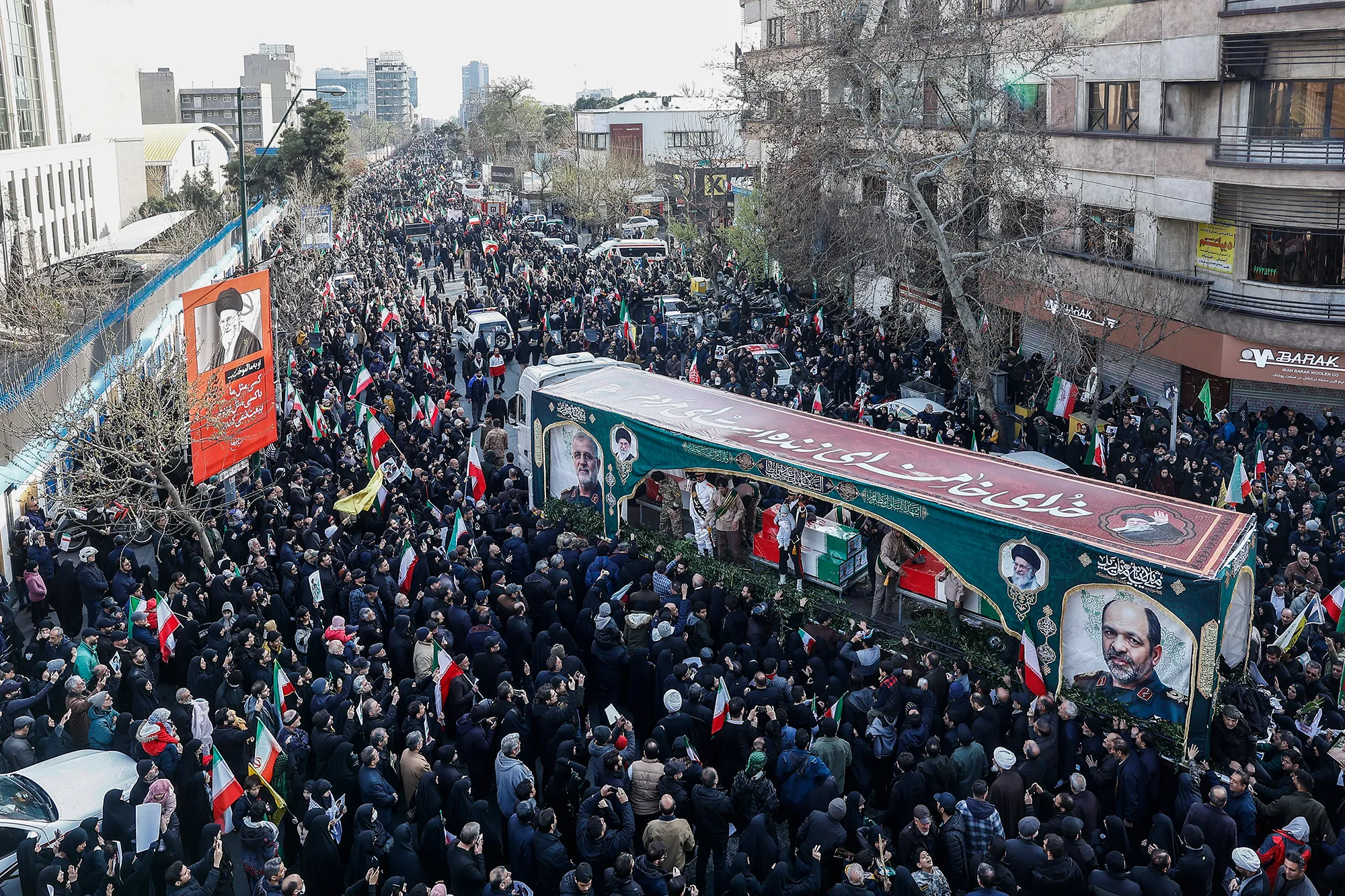 download all pictures(Tehran Ana)- A massive funeral procession is underway in Tehran on Wednesday for senior military commanders and other fallen soldiers martyred during the ongoing war, with thousands of mourners participating.