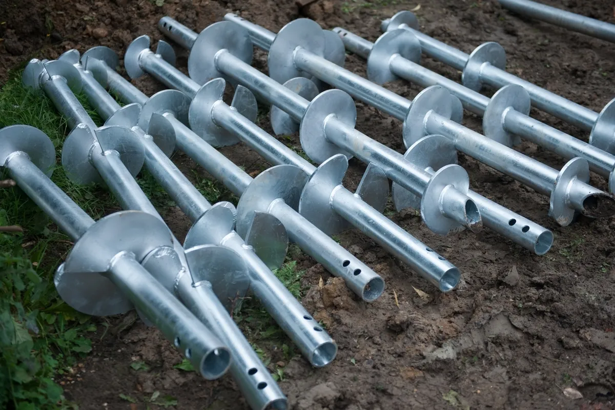 It consists of a tubular shaft with one or more spiral metal plates that transmits the tensile or compressive force of the structure to the ground through the shaft and spiral plates.”