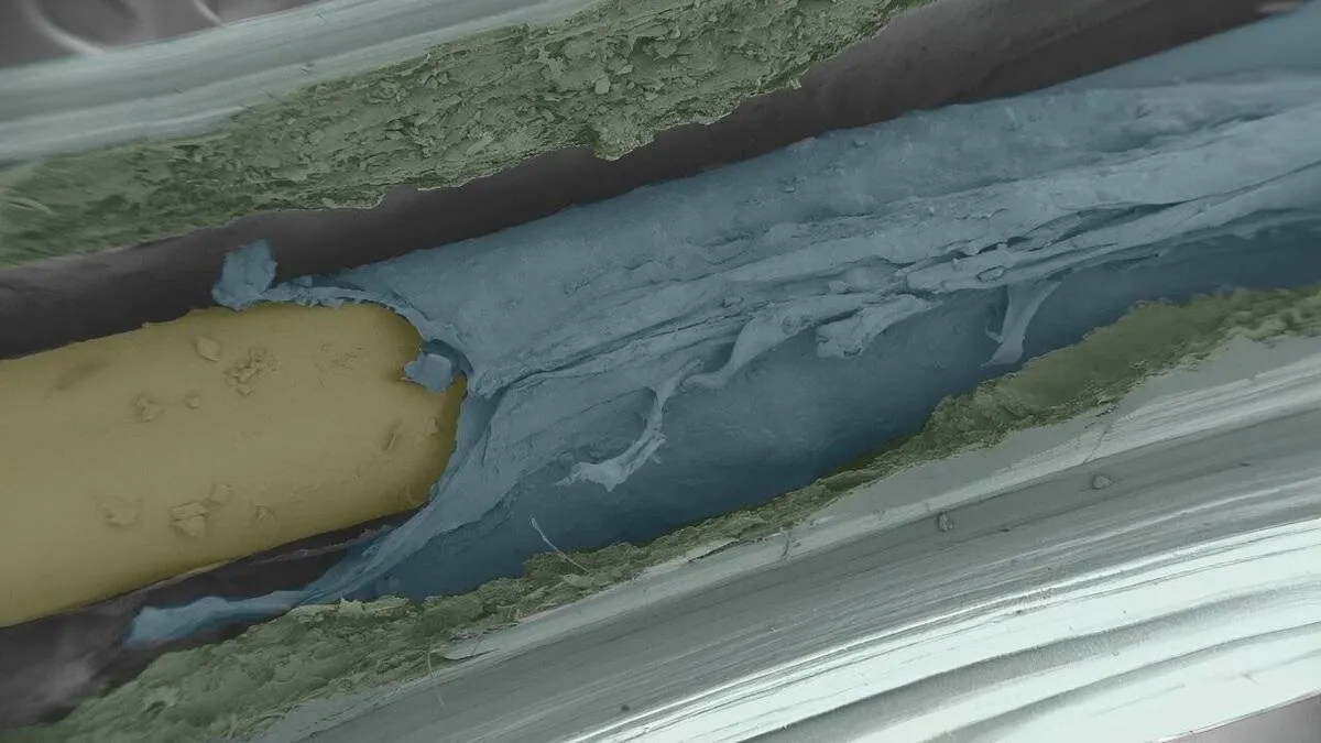 To assemble the BioFiber, the team started with a polymer fiber core capable of stabilizing and supporting concrete structures. It coated the fiber with a layer of endospore-laden hydrogel and encased the entire assembly with a damage-responsive polymer shell, like skin tissues. The entire assembly is a little over half a millimeter thick.