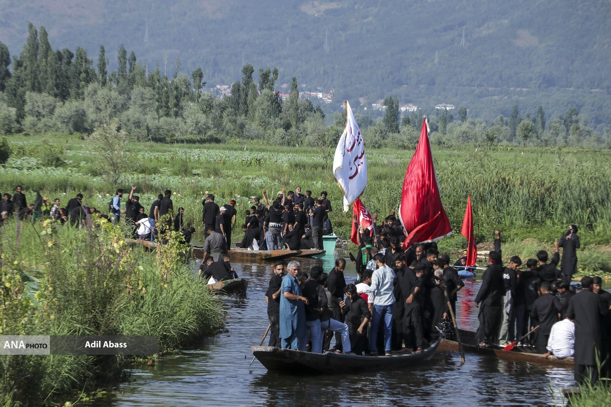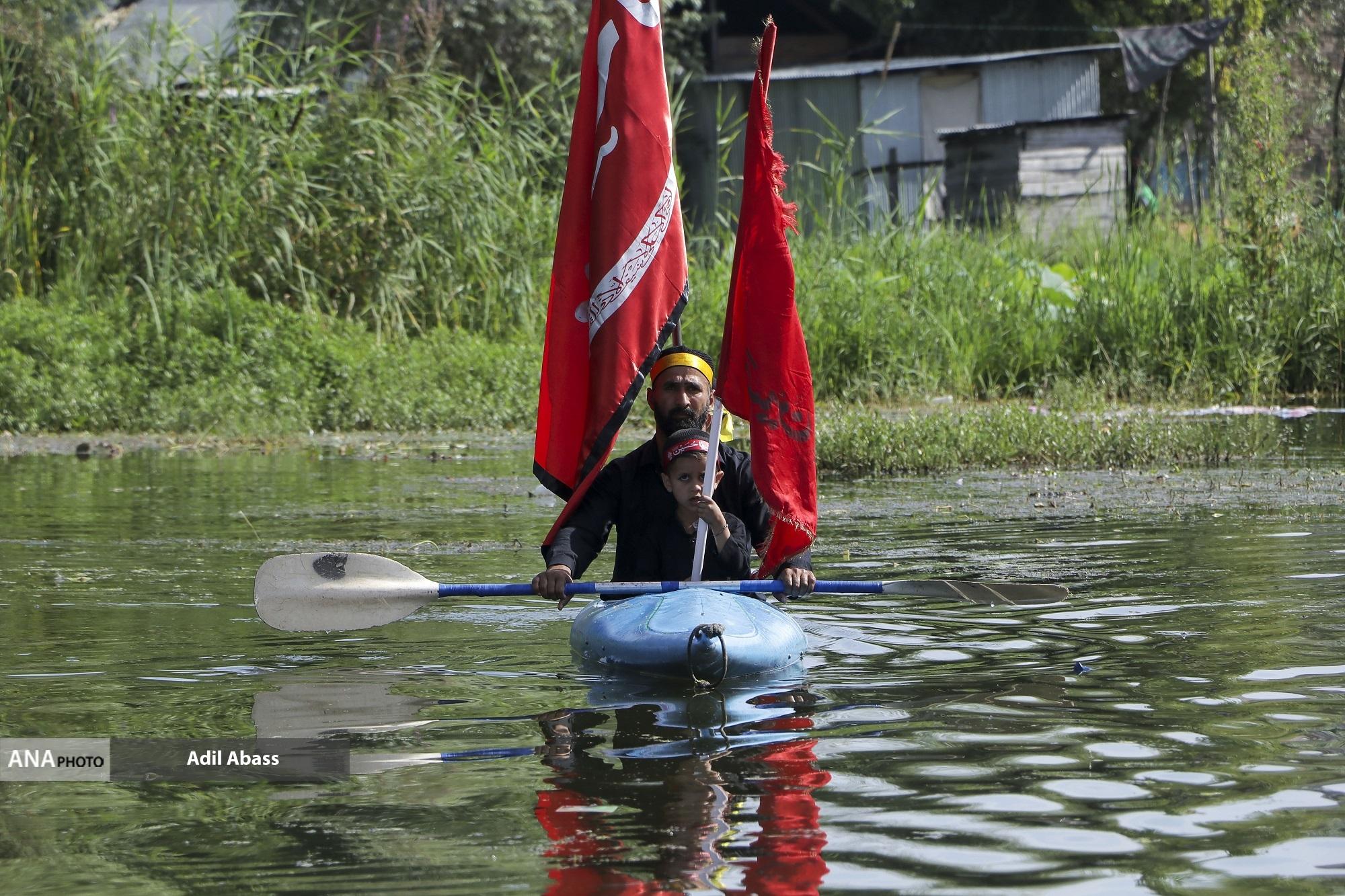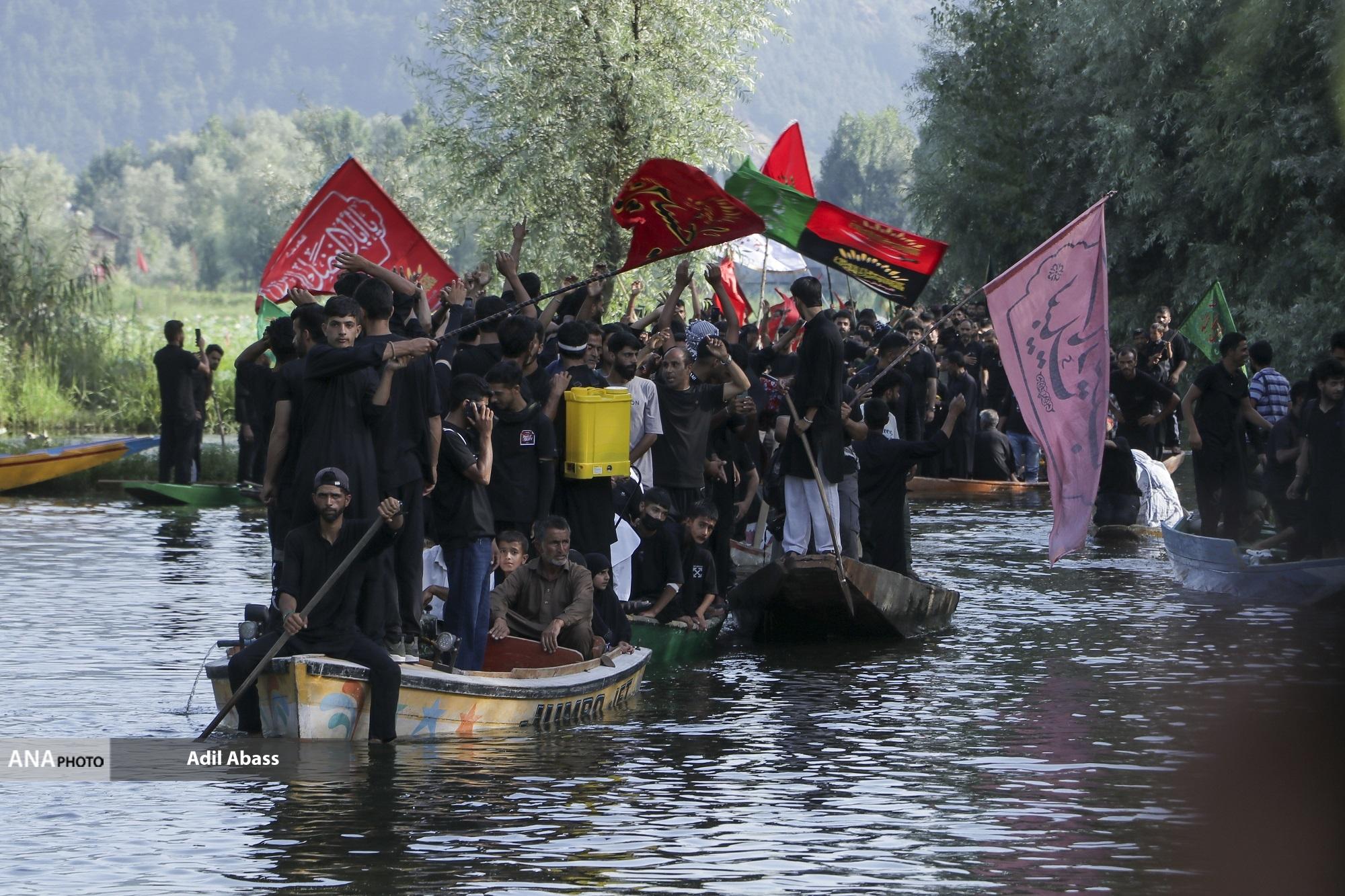 download all picturesTEHRAN (ANA)- A rare traditional Tasua (9th of Muharram) procession was taken out in the world-famous Dal Lake in Srinagar on wooden boats, marking the martyrdom of Imam Hossein (AS) who is the third Imam of Shiite.