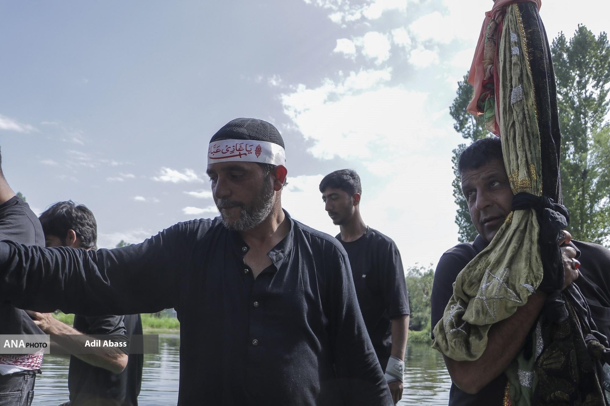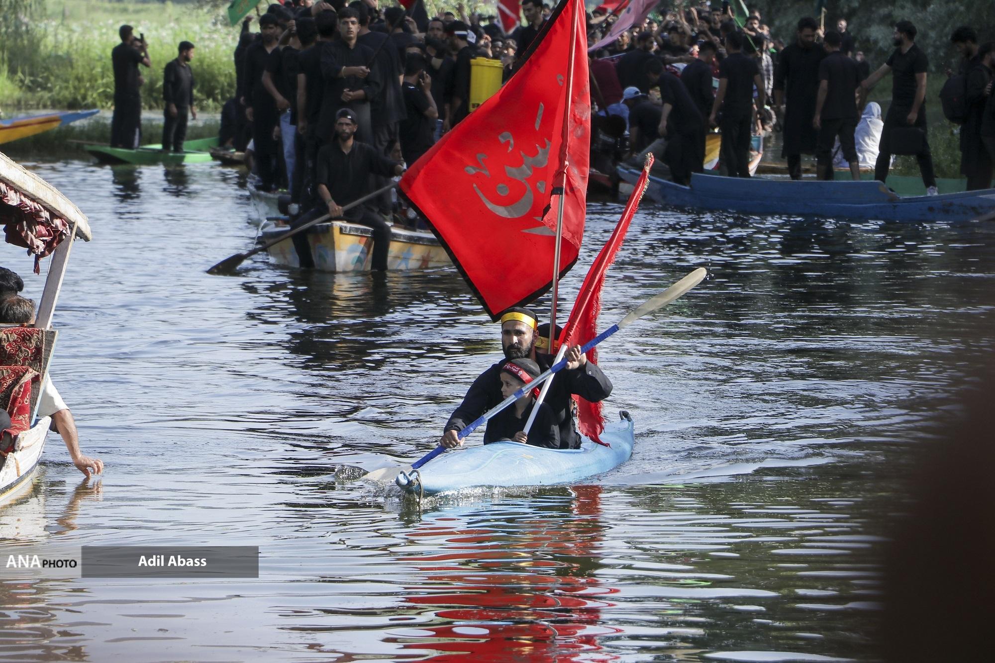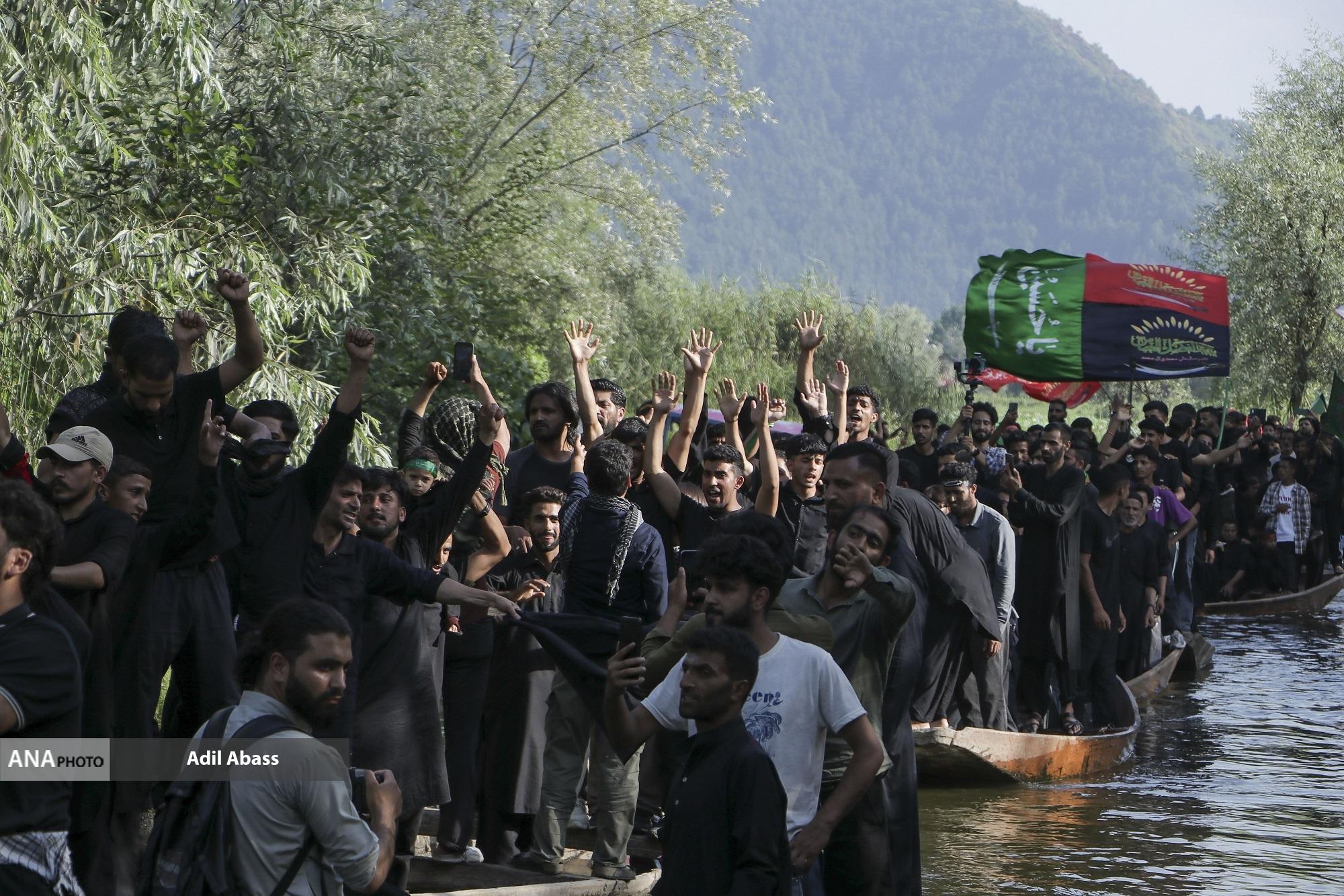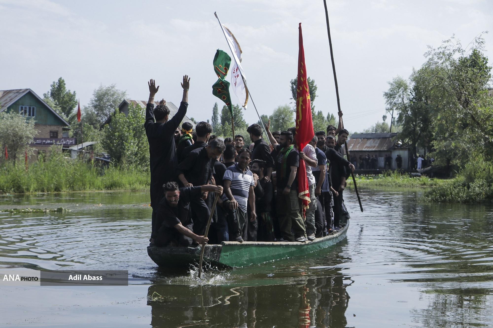 download all picturesTEHRAN (ANA)- A rare traditional Tasua (9th of Muharram) procession was taken out in the world-famous Dal Lake in Srinagar on wooden boats, marking the martyrdom of Imam Hossein (AS) who is the third Imam of Shiite.