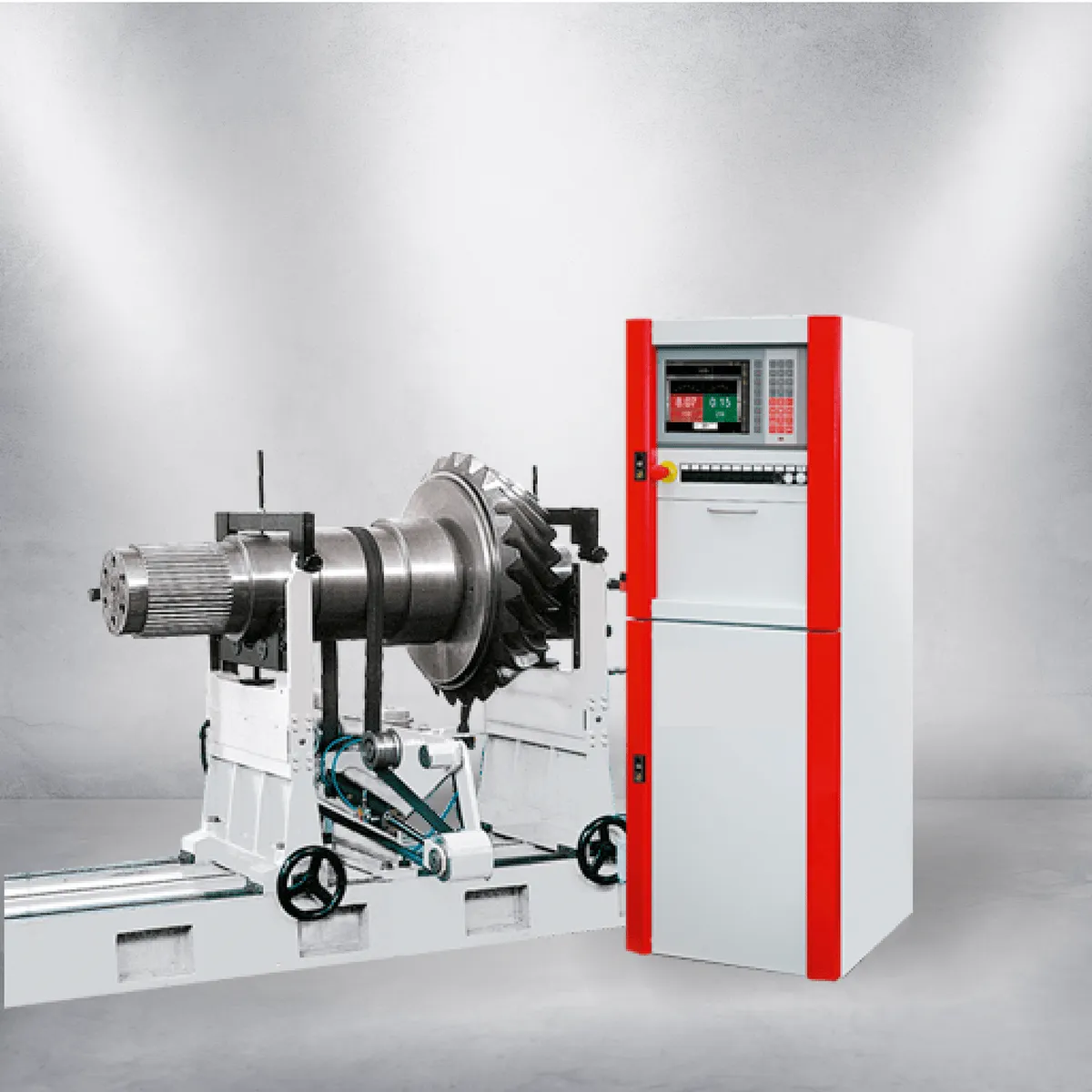 A balancing machine is a measuring tool used for balancing rotating machine parts such as rotors for electric motors, fans, turbines, disc brakes, disc drives, propellers and pumps. The machine usually consists of two rigid pedestals, with suspension and bearings on top supporting a mounting platform.