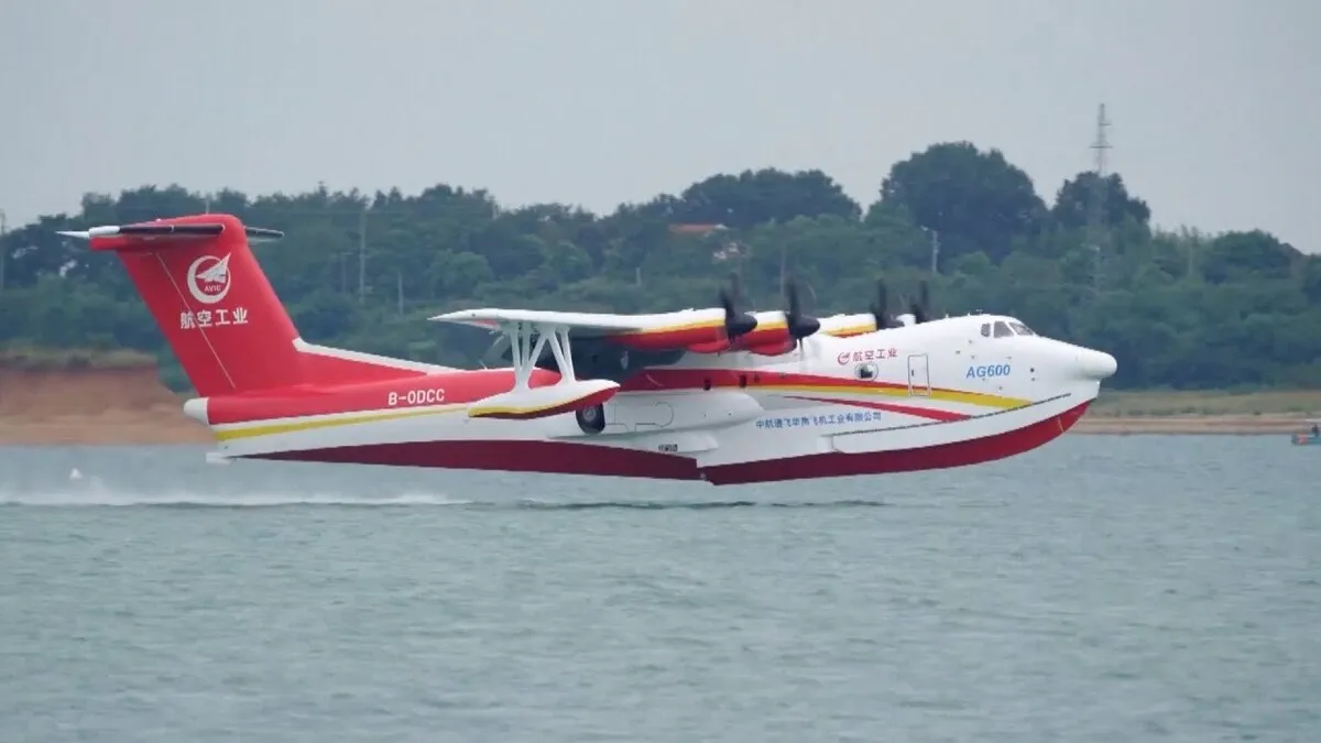 The AG600 is the world's largest civil amphibious aircraft in terms of takeoff weight -- a maximum of 60 tons. Notably, it is capable of carrying 12 tonnes of water for firefighting missions.