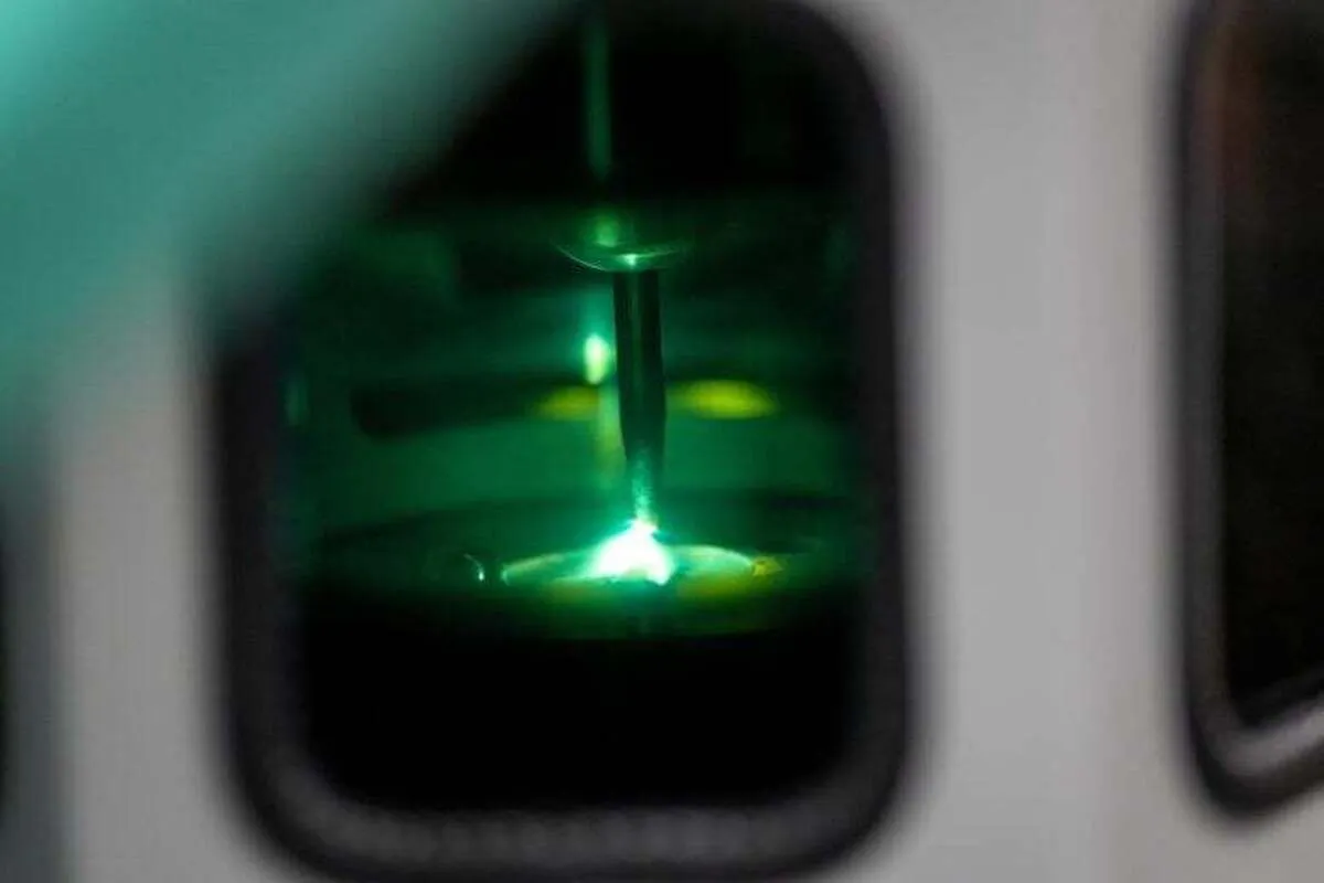 Producing manganese diboride requires extreme heat, generated by a device known as an “arc melter.” To begin, manganese and boron powders are pressed into a pellet and sealed inside a reinforced glass chamber. A narrow electrical current is then directed at the pellet, heating it to nearly 3,000°C (over 5,000°F). The molten substance is rapidly cooled to preserve its structure. On the atomic scale, this process forces the central manganese atom to bond with more atoms than usual, creating a crowded arrangement tightly compressed like a coiled spring.