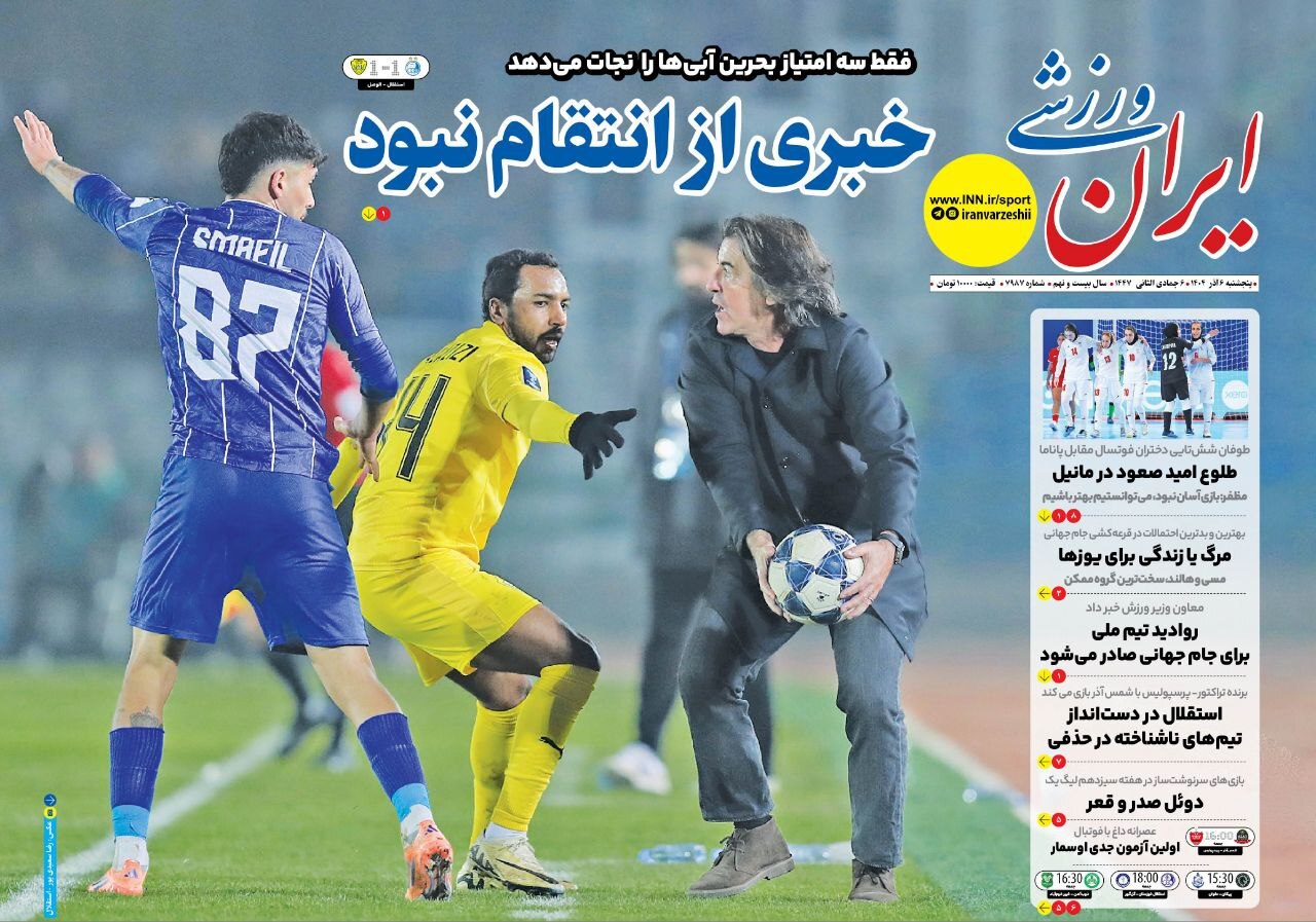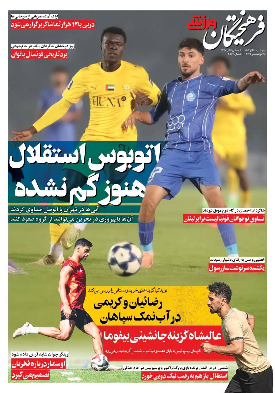 روزنامههای ورزشی پنجشنبه ۶ آذر ماه ۱۴۰۴