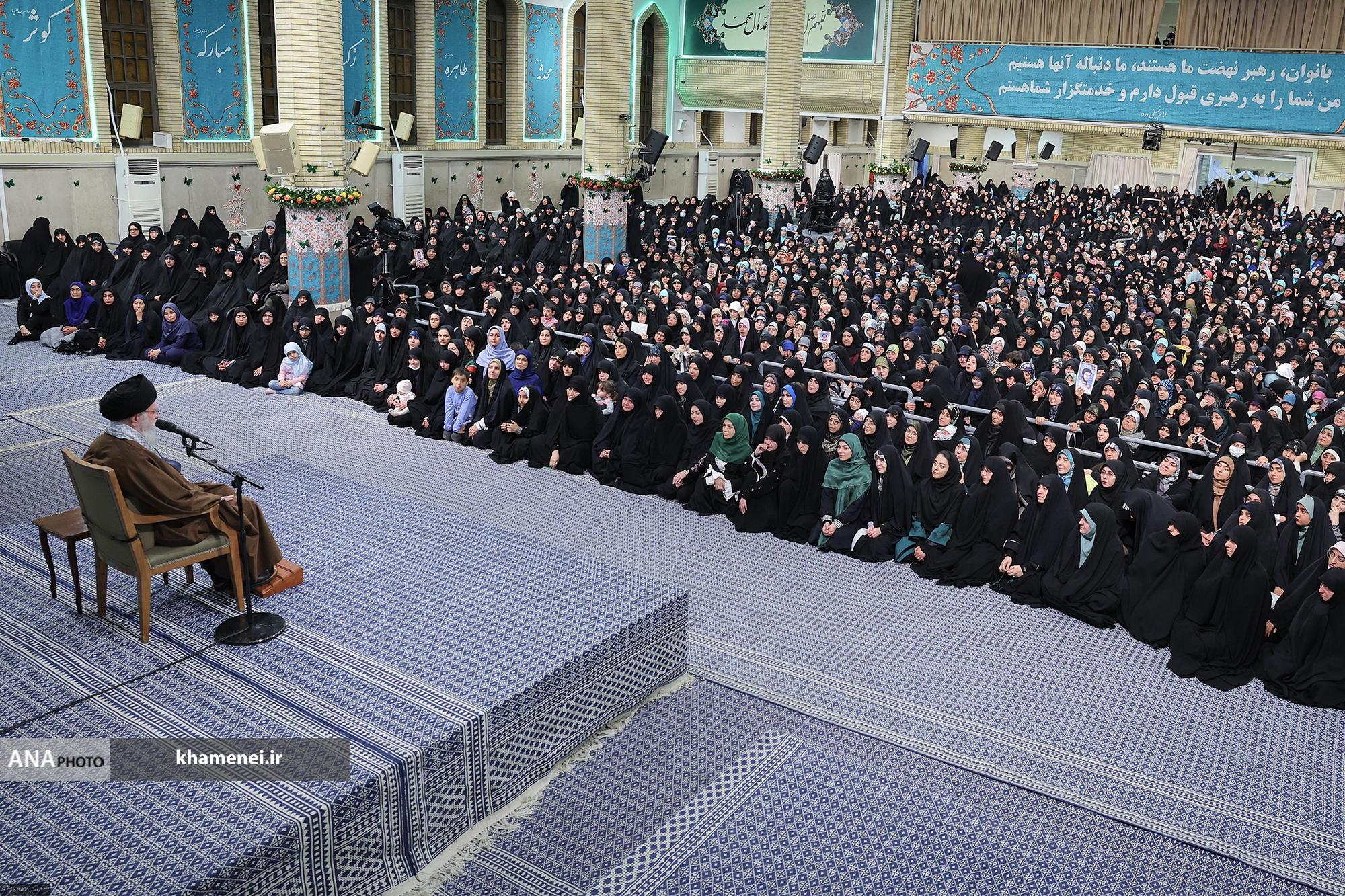 هزاران نفر از زنان و دختران مناطق مختلف کشور، صبح امروز، چهارشنبه ۱۲ آذرماه با حضور در حسینیه امام خمینی(ره) با حضرت آیتالله خامنهای رهبر انقلاب اسلامی دیدار کردند.