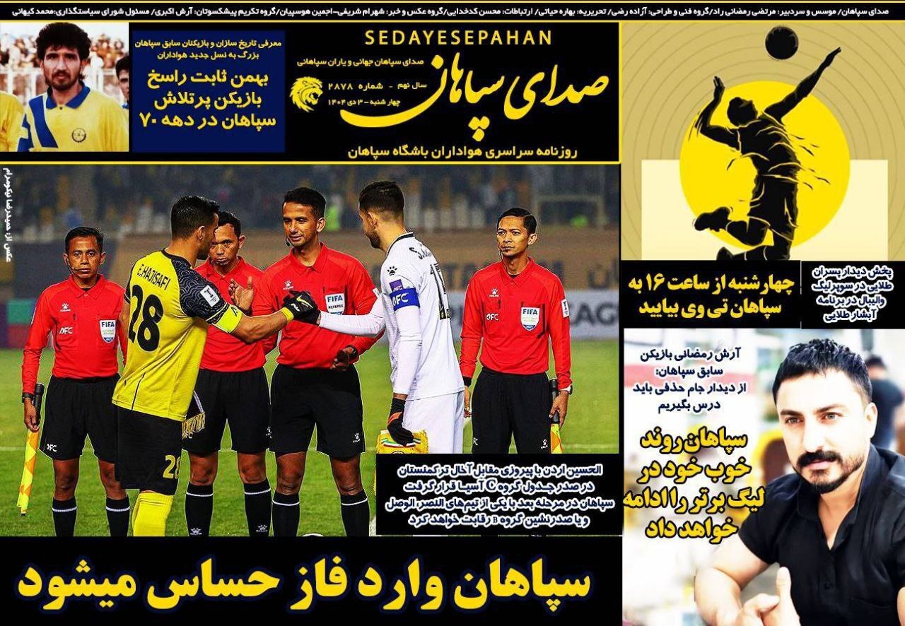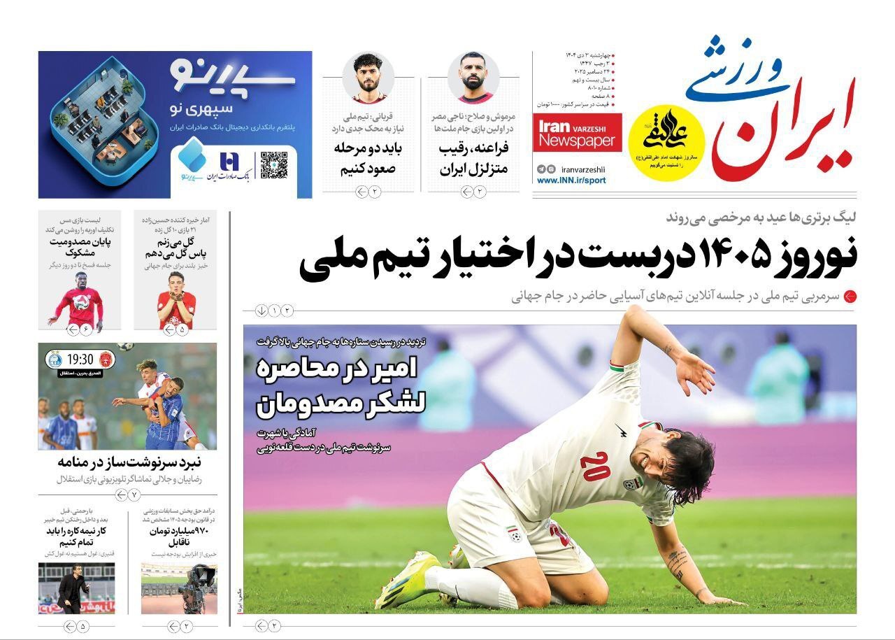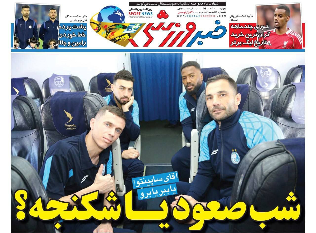 روزنامه های ورزشی چهارشنبه سوم دی ماه ۱۴۰۴