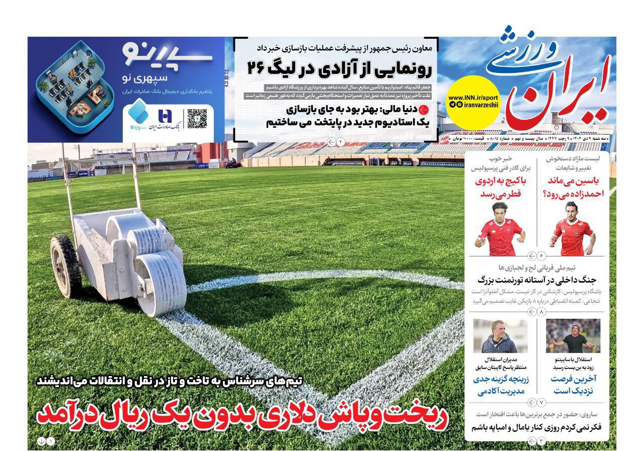 روزنامه‌های ورزشی سه‌شنبه ۹ دی ماه ۱۴۰۴