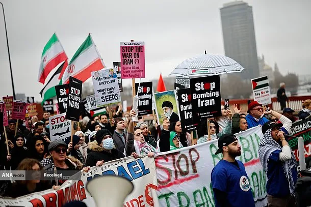 هزاران نفر از مردم و ساکنان لندن در حمایت از جمهوری اسلامی ایران و محکوم کردن حملات رژیم صهیونیستی-آمریکایی به خاک ایران مقابل سفارت آمریکا در لندن تجمع کردند و برخی شعار «پیروزی از آن ایران» و «مرگ، مرگ بر ارتش اسرائیل» سر دادند.