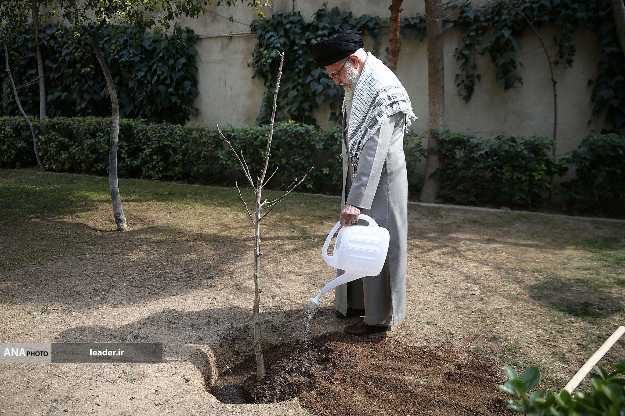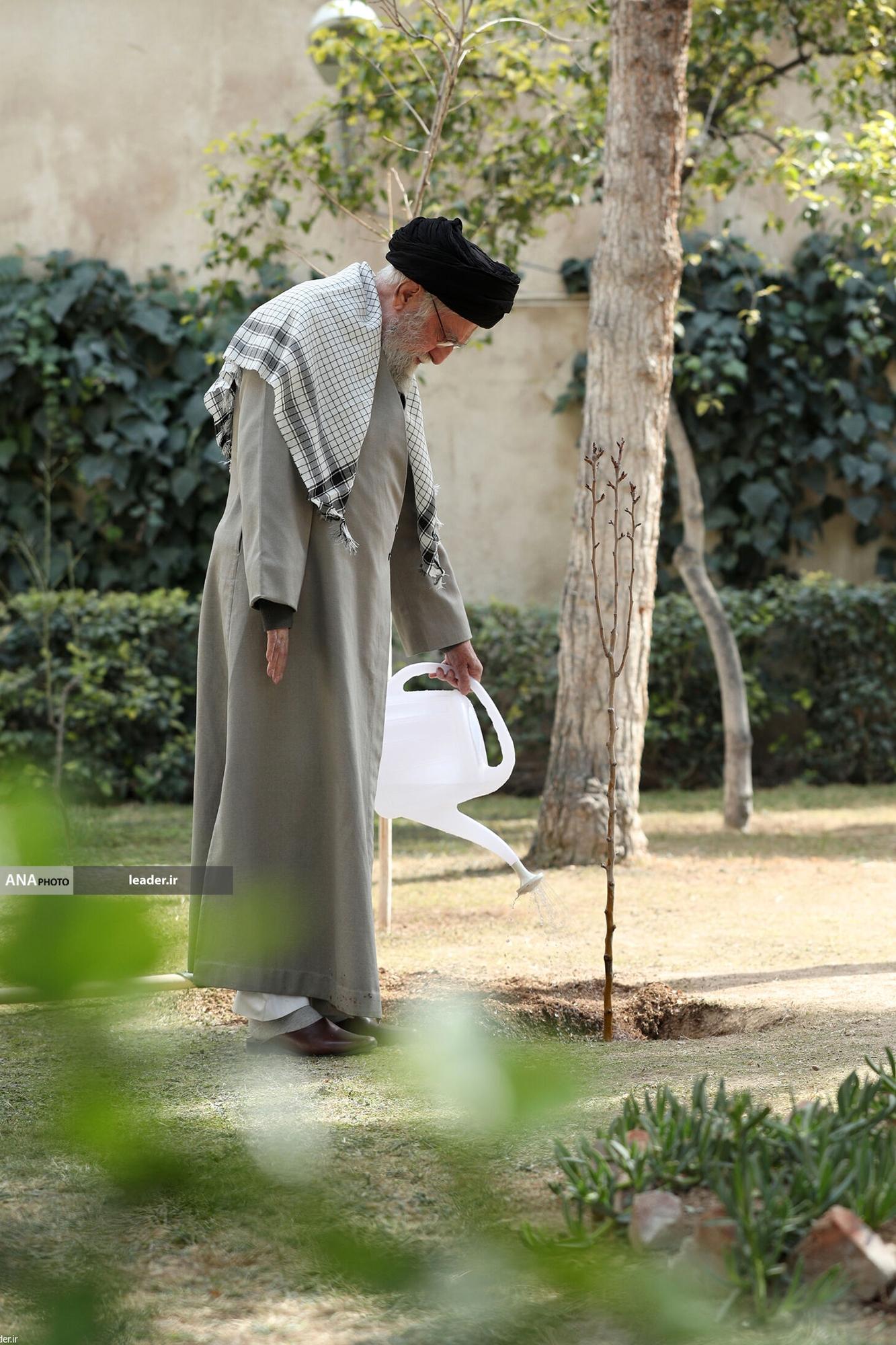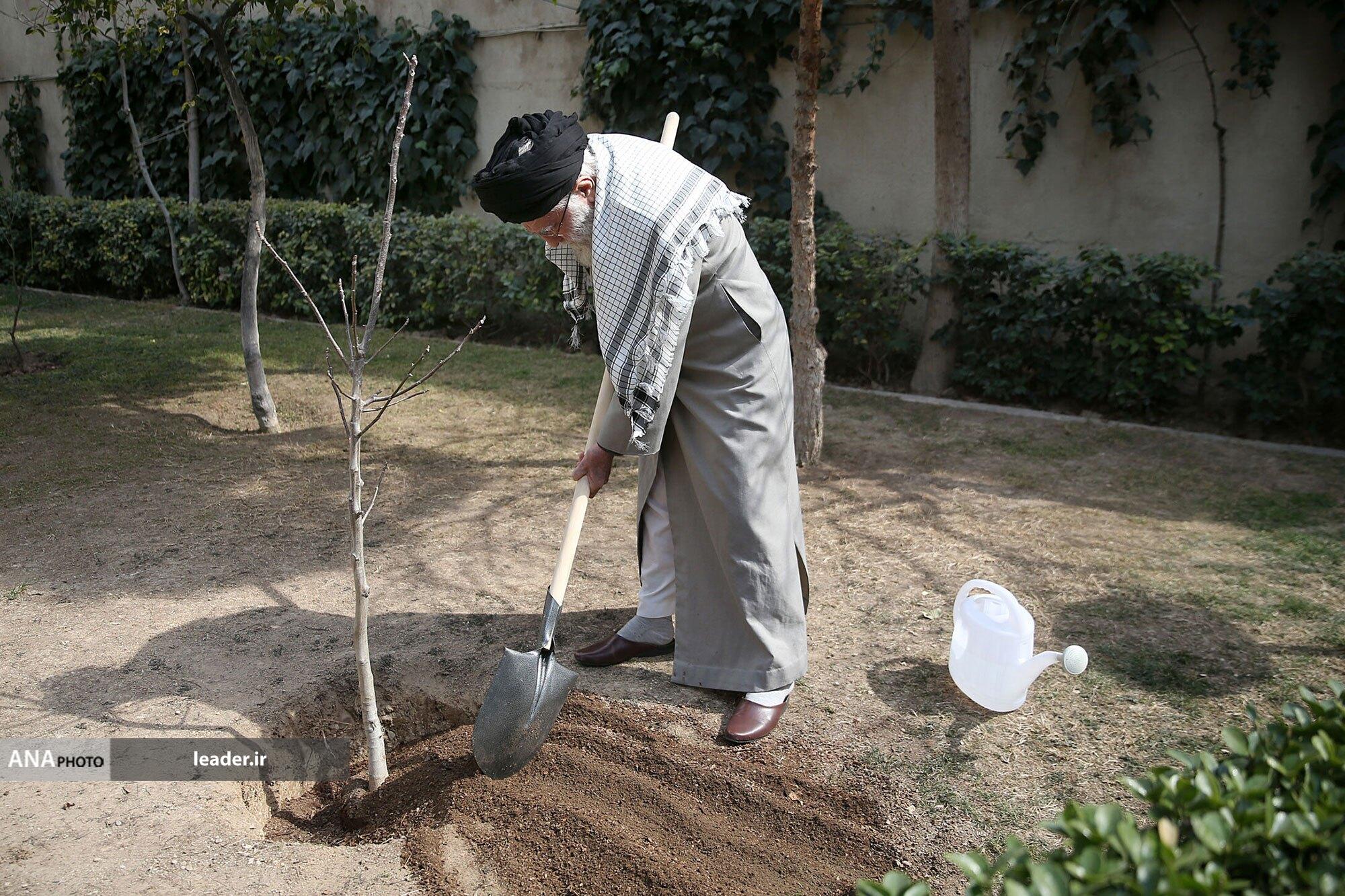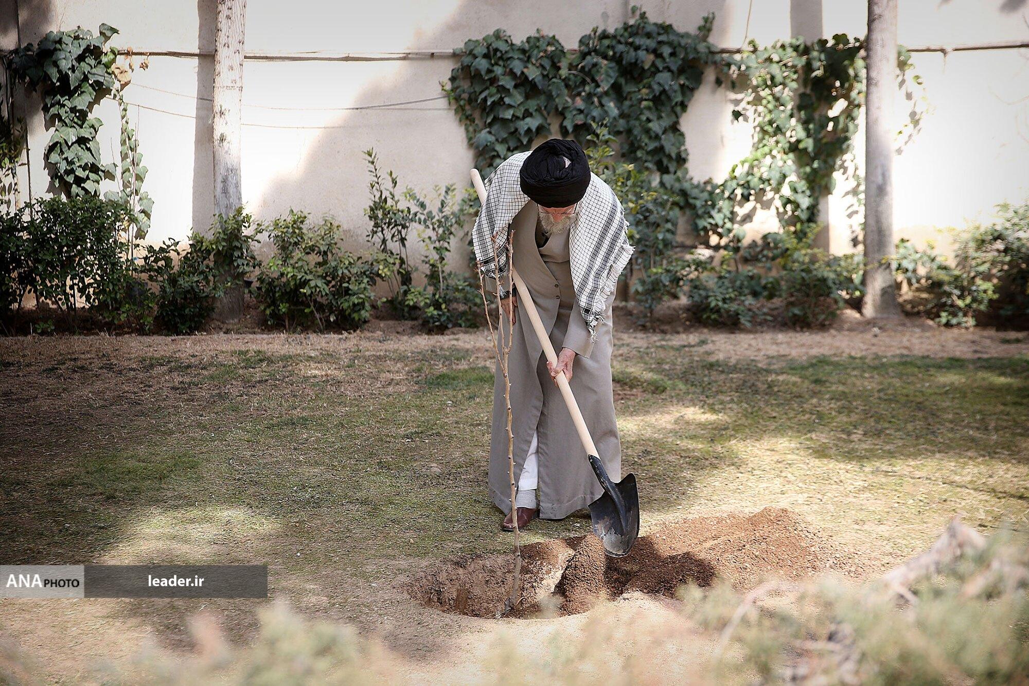 حضرت آیتالله خامنهای رهبر انقلاب اسلامی در هفته منابع طبیعی و همزمان با روز درختکاری صبح امروز چهارشنبه، سه اصله نهال کاشتند.