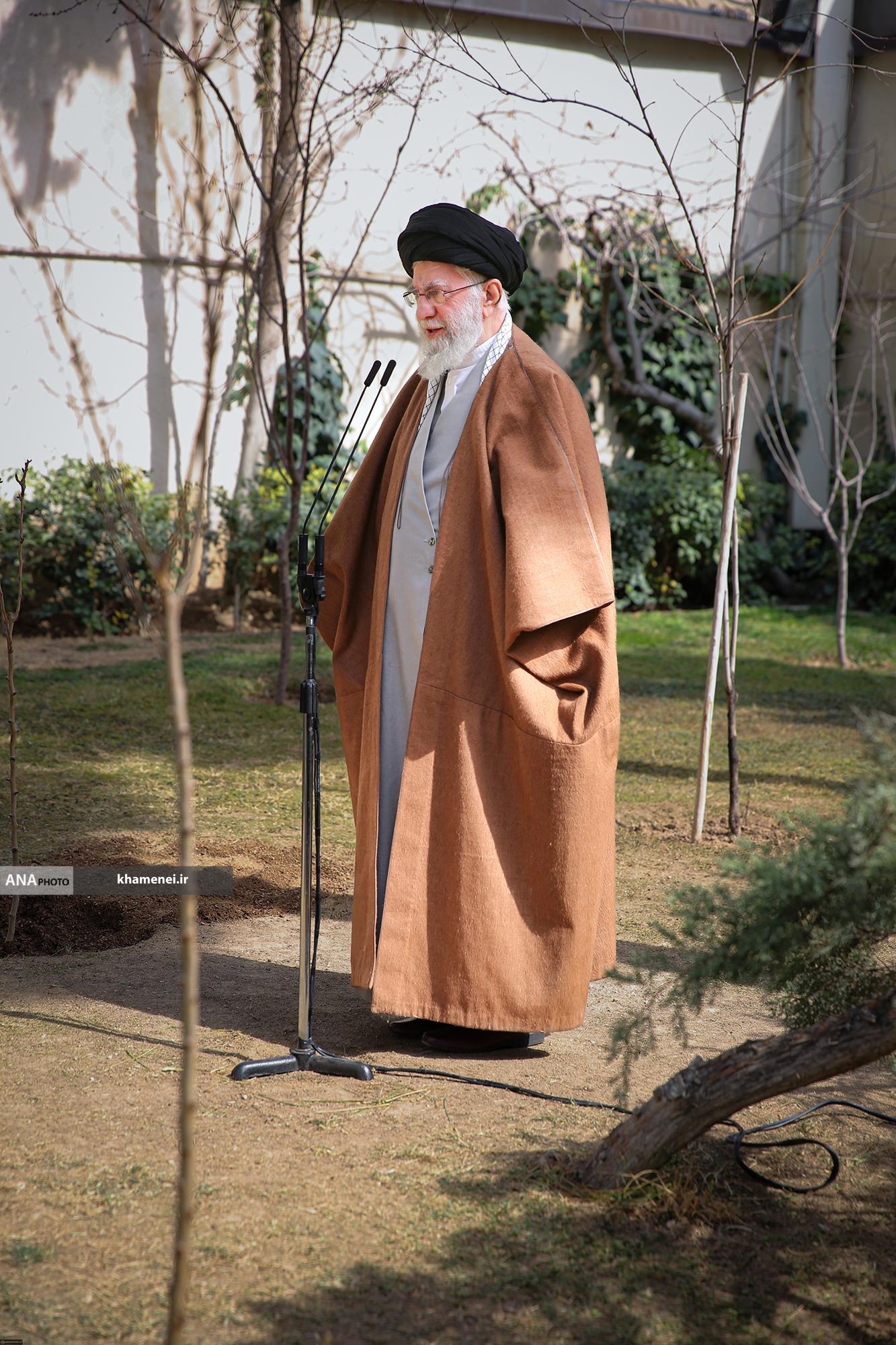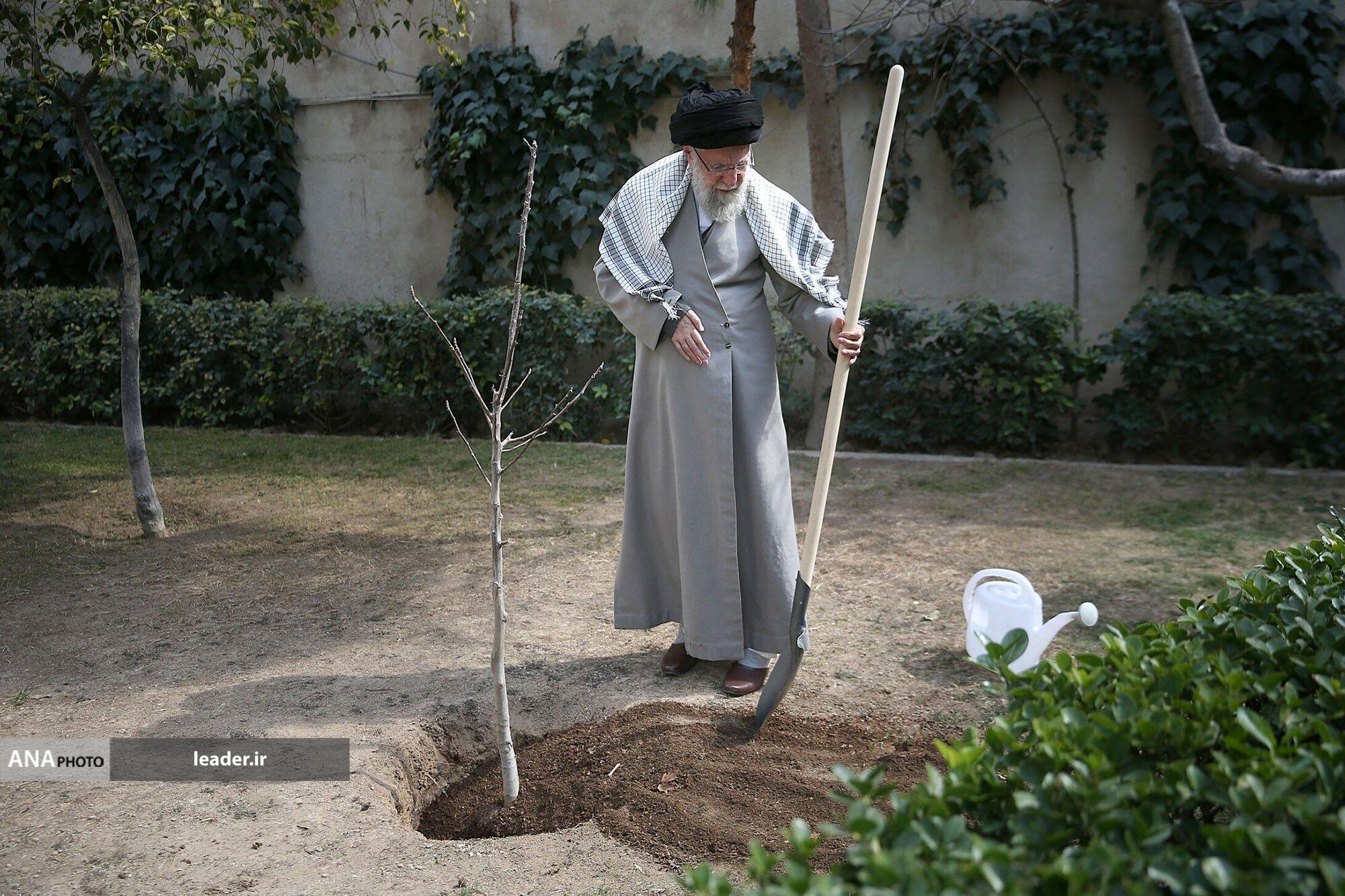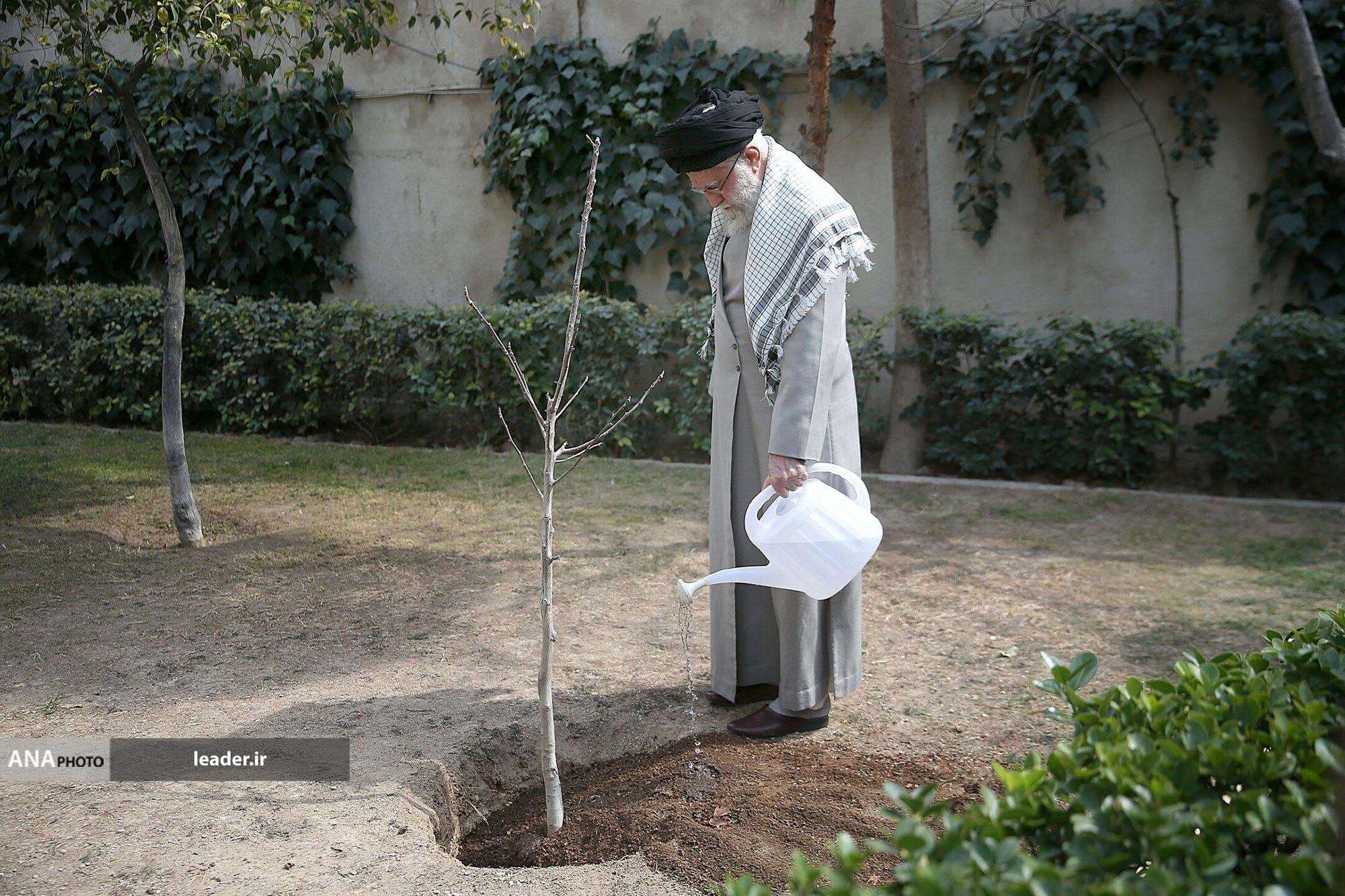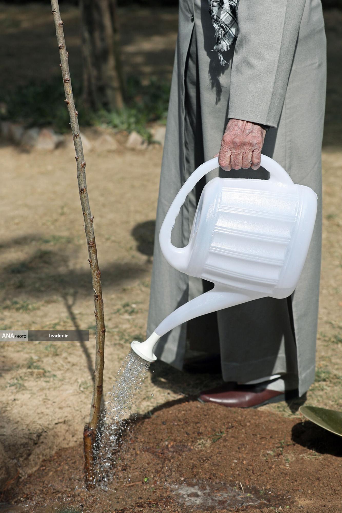 حضرت آیتالله خامنهای رهبر انقلاب اسلامی در هفته منابع طبیعی و همزمان با روز درختکاری صبح امروز چهارشنبه، سه اصله نهال کاشتند.