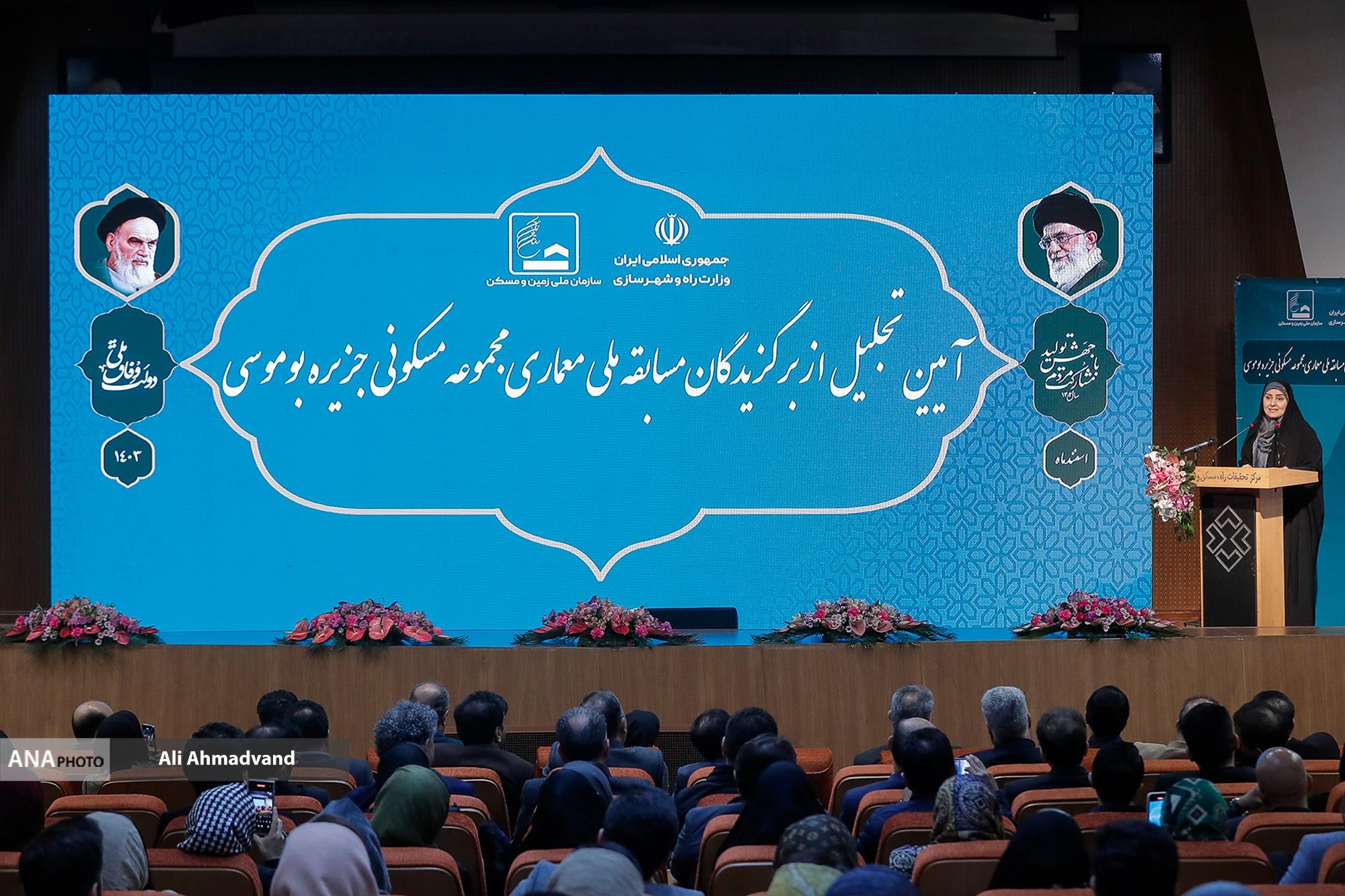 آیین تجلیل از برگزیدگان مسابقه ملی معماری مجموعه مسکونی جزیره بوموسی پیش از ظهر امروز با حضور «فرزانه صادق» وزیر راه و شهرسازی در مرکز تحقیقات راه و شهرسازی برگزار شد.