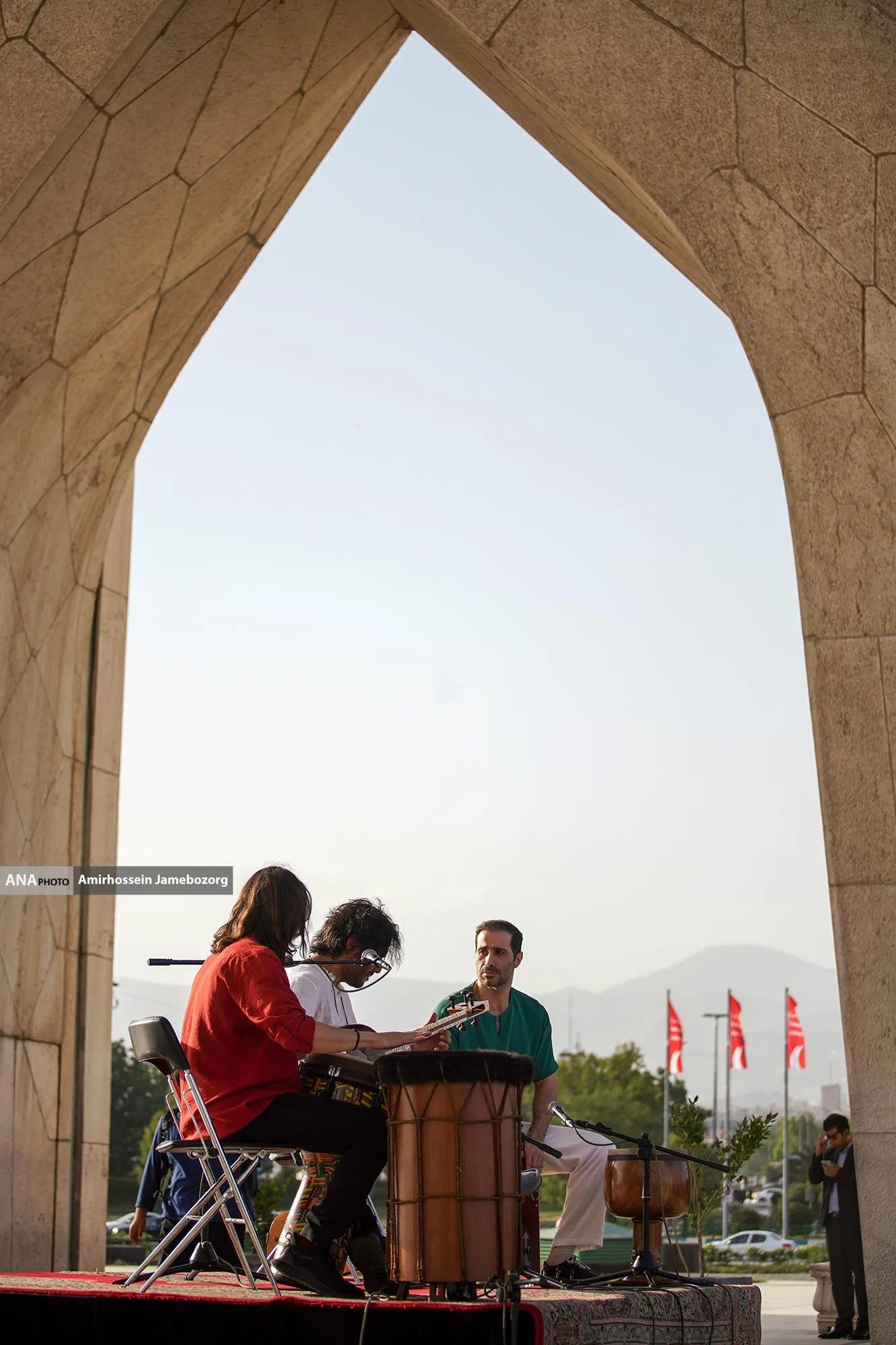علی قمصری آهنگساز و نوازنده تار با پیام همدلی مردم و تلاش برای بازآفرینی حالی خوش برای ساکنان تهران که این روزها را در شرایطی حمله متجاوزانه رژیم صهیونی و ارتش تروریستی آمریکا به میهن اسلامی می باشیم، به همراه همنوازان حصار ،کامران منتظری و حمیدرضا یوسفی ، قطعاتی از موسیقی ایرانی را در محوطه برج آزادی تهران اجرا کرد.