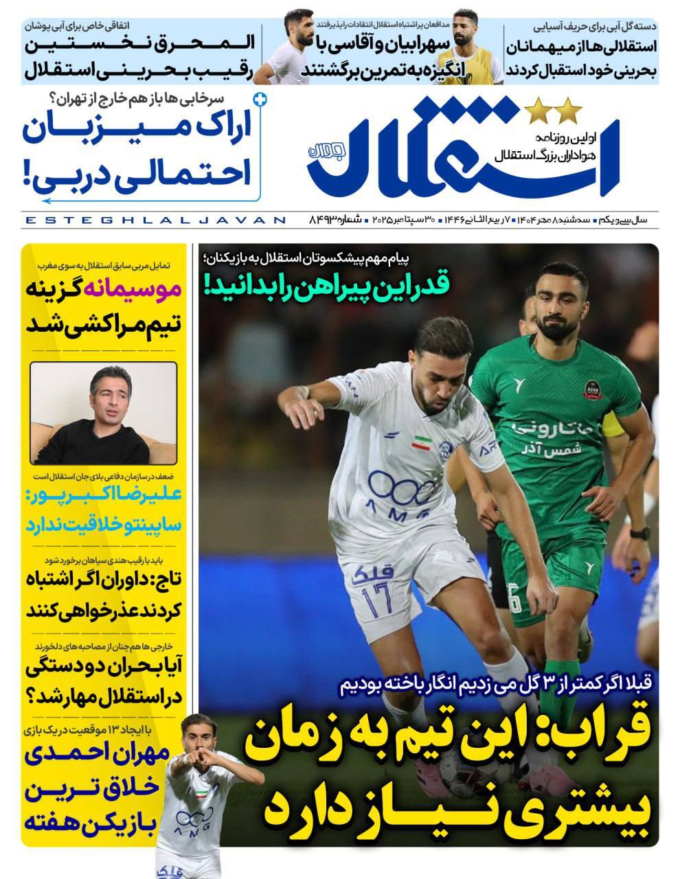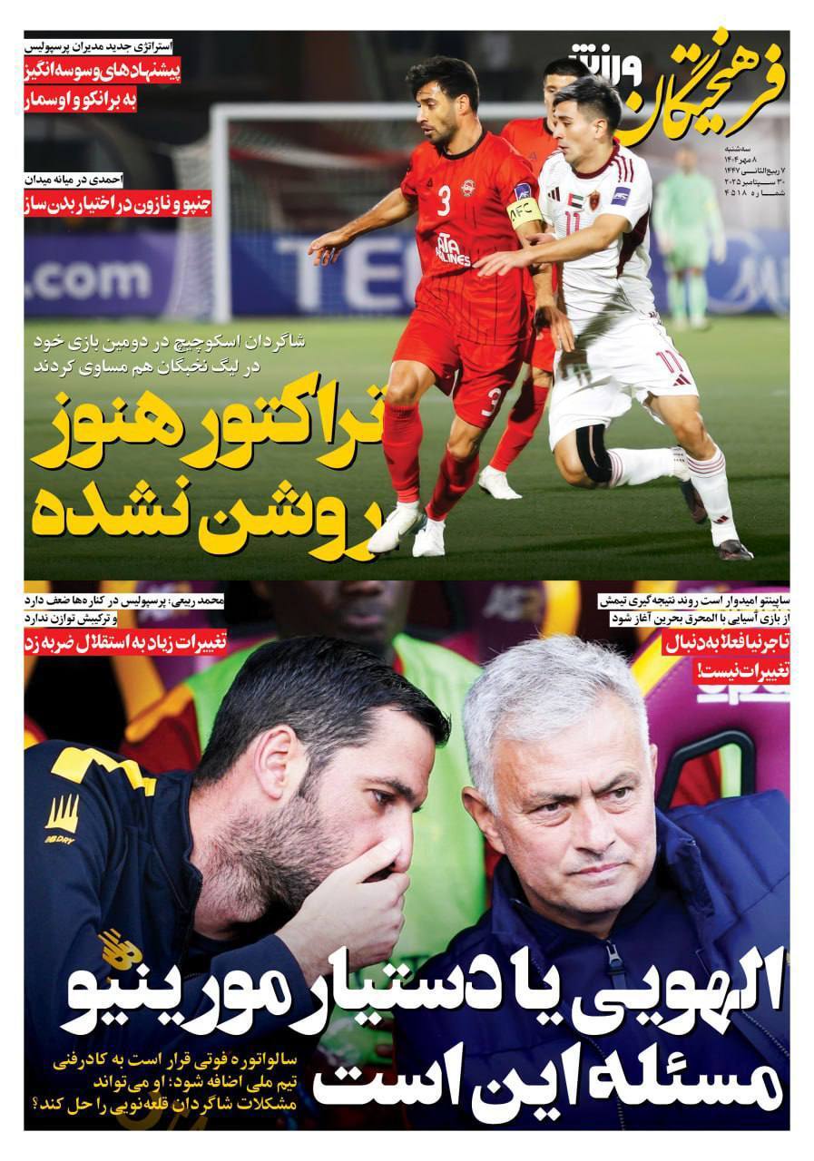 روزنامه‌های ورزشی سه شنبه 8 مهر ۱۴۰۴