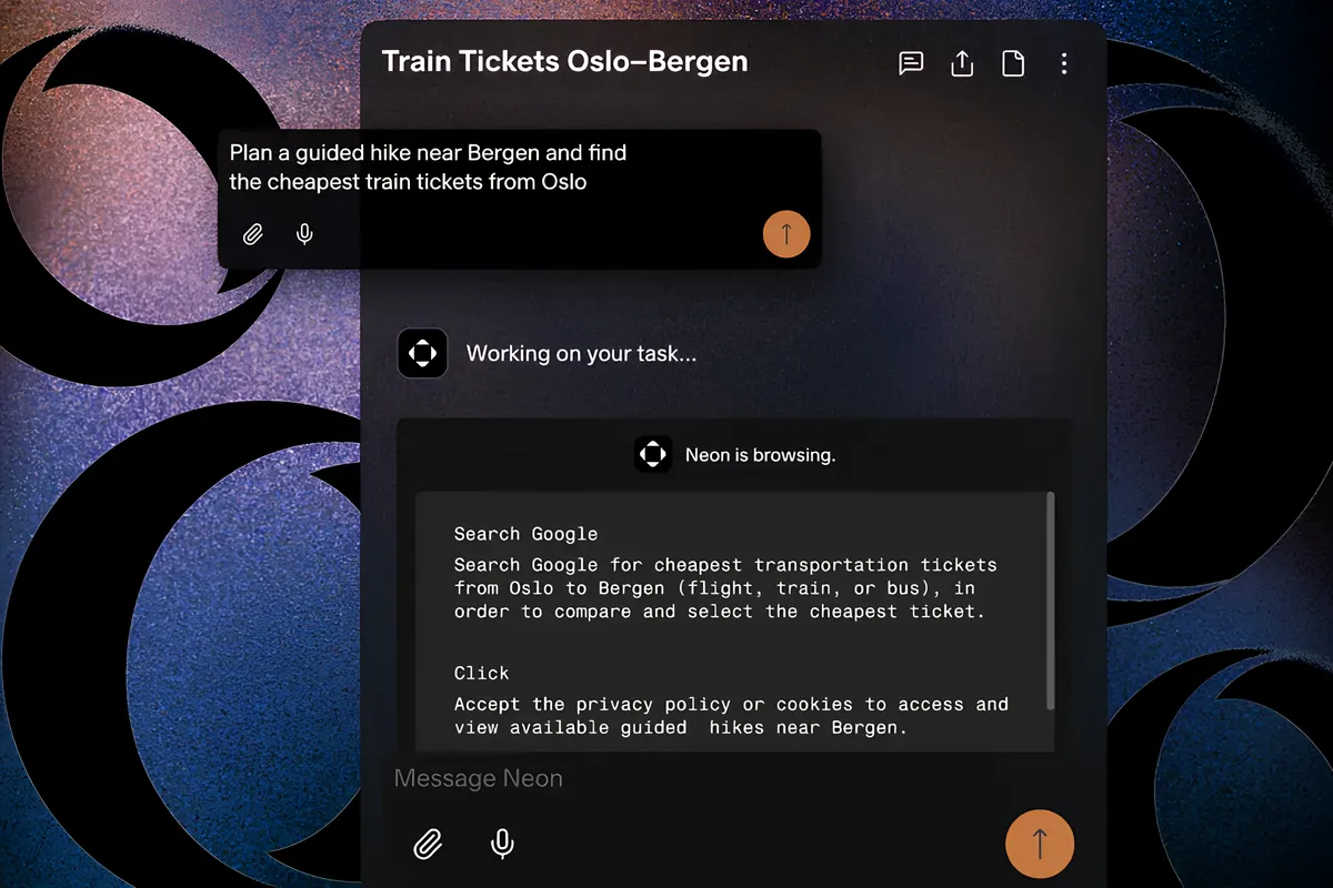 ویژگی اصلی این مرورگر، قابلیتی به نام Neon Do است که به عنوان یک دستیار هوشمند عمل میکند. برای مثال، شما میتوانید از آن بخواهید یک مقاله طولانی را بخواند و خلاصه آن را به طور مستقیم در وبسایت شما منتشر کند. از آنجایی که مرورگر به تاریخچه فعالیت شما آگاه است، میتوانید به سادگی از آن بپرسید: «آن ویدیوی آشپزی که هفته پیش دیدم را پیدا کن» تا بدون جستوجو به آن دسترسی پیدا کنید. در کنار این قابلیت، یک ربات گفتگوی استاندارد نیز برای پاسخ به سوالات عمومی در نظر گرفته شده است.