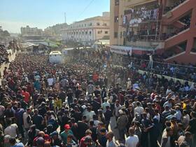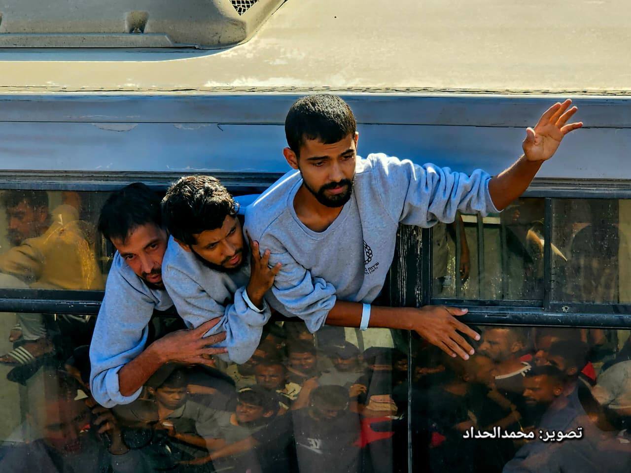 لحظه ورود 38 اتوبوس حامل اسرای فلسطینی به بیمارستان ناصر در خانیونس