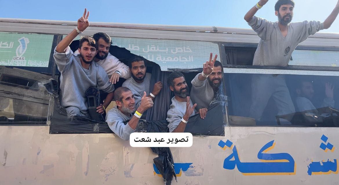 همچنین، اتوبوسهای اسرای آزادشده به خانیونس در جنوب غزه رسیدند و با استقبال گرم خانوادهها مواجه شدند.