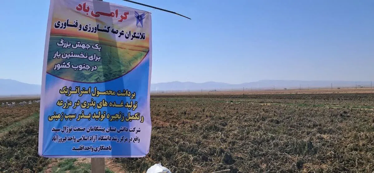 مهدی رستگاری رئیس دانشگاه آزاد اسلامی واحد فیروزآباد در گفتگو با خبرنگار آنا از آغاز برداشت محصول از مزرعه تحقیقاتی تولید بذر‌های مادری سیب‌زمینی این واحد دانشگاهی با همکاری دانشگاه آزاد اسلامی واحد اقلید خبر داد و اظهار کرد: این پروژه پس از اجرای موفق طرح توسعه گیاهچه‌ها در آزمایشگاه کشت بافت و تولید مینی تیوبر‌های گلخانه‌ای هم‌اکنون فاز مزرعه‌ای آن به مرحله برداشت رسیده و ۱۰ هکتار از ارقام سافته، کلمبا، جیلی و آگریا با موفقیت برداشت شده‌اند.