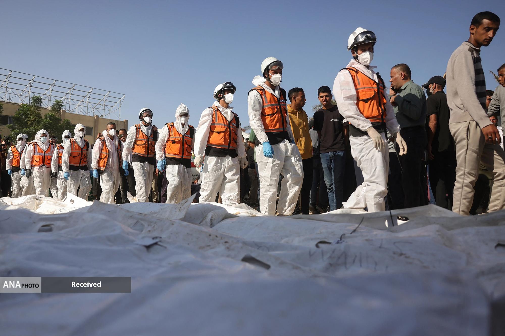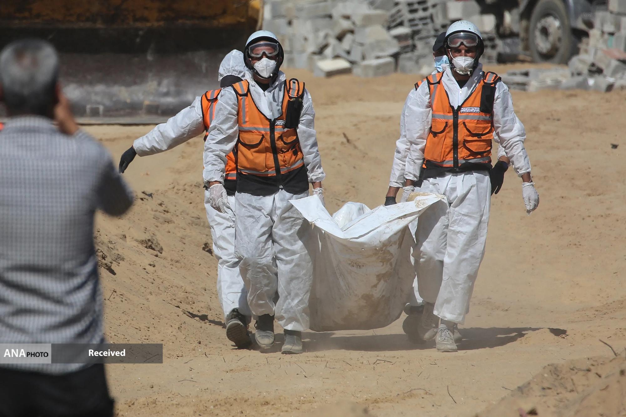 مراسم تشییع شهدای فلسطینیناشناس و اجساد بازگردانده شده توسط رژیم صهیونیستی در غزه برگزار شد.در میان غم و اندوه، مراسم تشییع پیکر شهدای به یاد فلسطینیهای متوفی برگزار شد، زیرا اجساد بسیاری از آنها به قدری مثله شده بودند که قابل شناسایی نبودند - در گورهای دسته جمعی در دیر البلح دفن شده بودند.