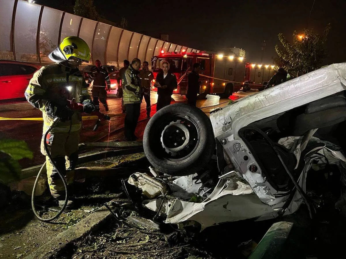 فوت ۲ جوان در حادثه واژگونی پژو ۲۰۶ در بزرگراه حکیم +فیلم