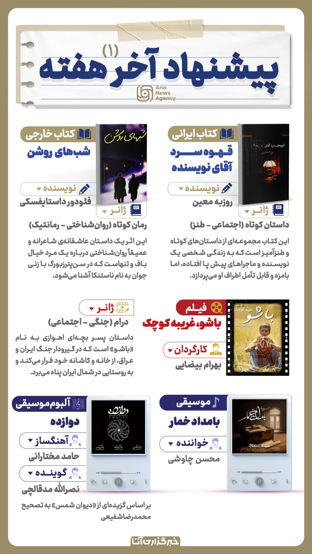 آخر هفتهها، فرصتی طلایی برای فرار از روزمرگی و غرق شدن در دنیای کتاب و فیلم و موسیقی است. اگر به دنبال تجربههای عمیق و به یادماندنی هستید، با این آثار معرفی شده همراه شوید.