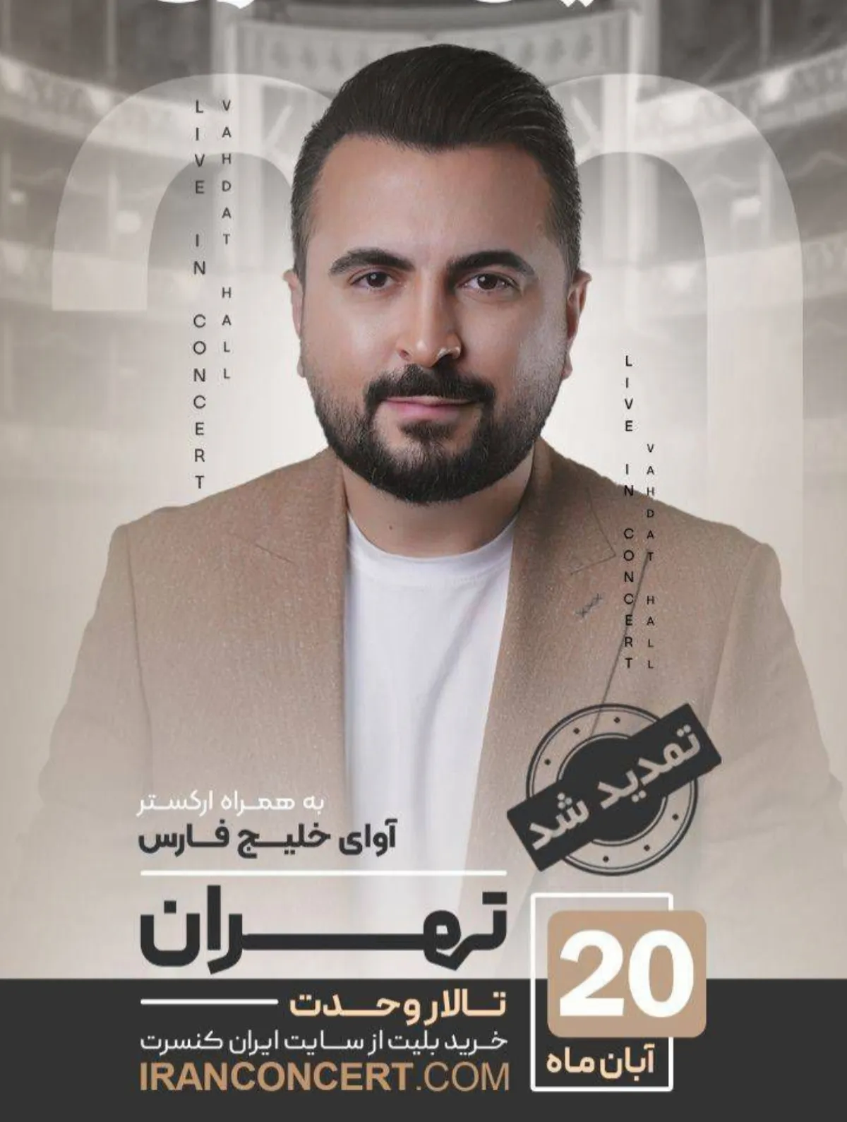 کنسرت ارکستر آوای خلیج فارس به رهبری امین غفاری، از ساعت ۲۱:۳۰ شامگاه سهشنبه ۲۰ آبان در تالار وحدت برگزار میشود و بلیتهای آن از طریق سایت ایران کنسرت در دسترس علاقهمندان قرار دارد.