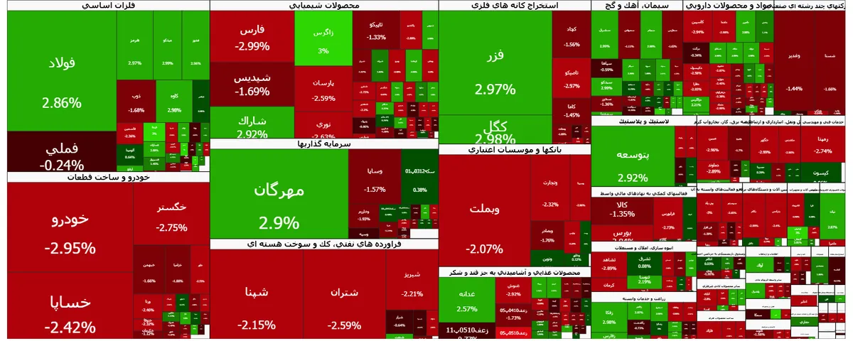 در پایان معاملات امروز بورس تهران، شاخص کل بورس با کاهش ۳۶ هزار و ۹۲۷ واحدی به ۳ میلیون و ۱۱۴ هزار واحد سقوط کرد.