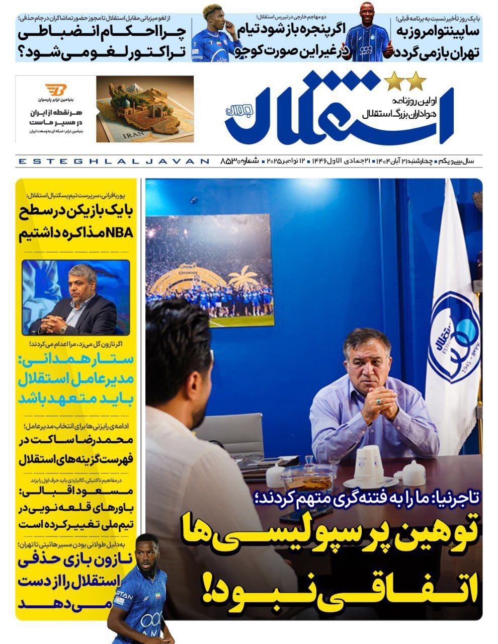 روزنامههای ورزشی چهارشنبه 21 آبان ماه ۱۴۰۴