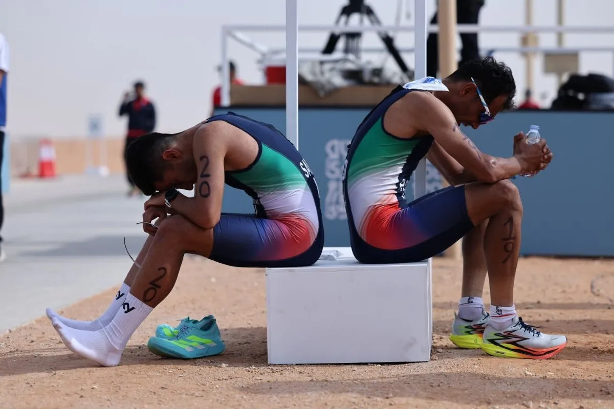 رضایی در پایان مسابقهای که مسافت ۵ کیلومتر دویدن، ۲۰ کیلومتر رکاب زدن و سپس ۲.۵ کیلومتر دویدن پایانی را تجربه کرد و چهارم شد، از شدت ناراحتی به گریه افتاد. اشکهای او علاوه بر همتیمیها تعدادی از برگزار کنندگان را هم تحت تاثیر قرار داد.