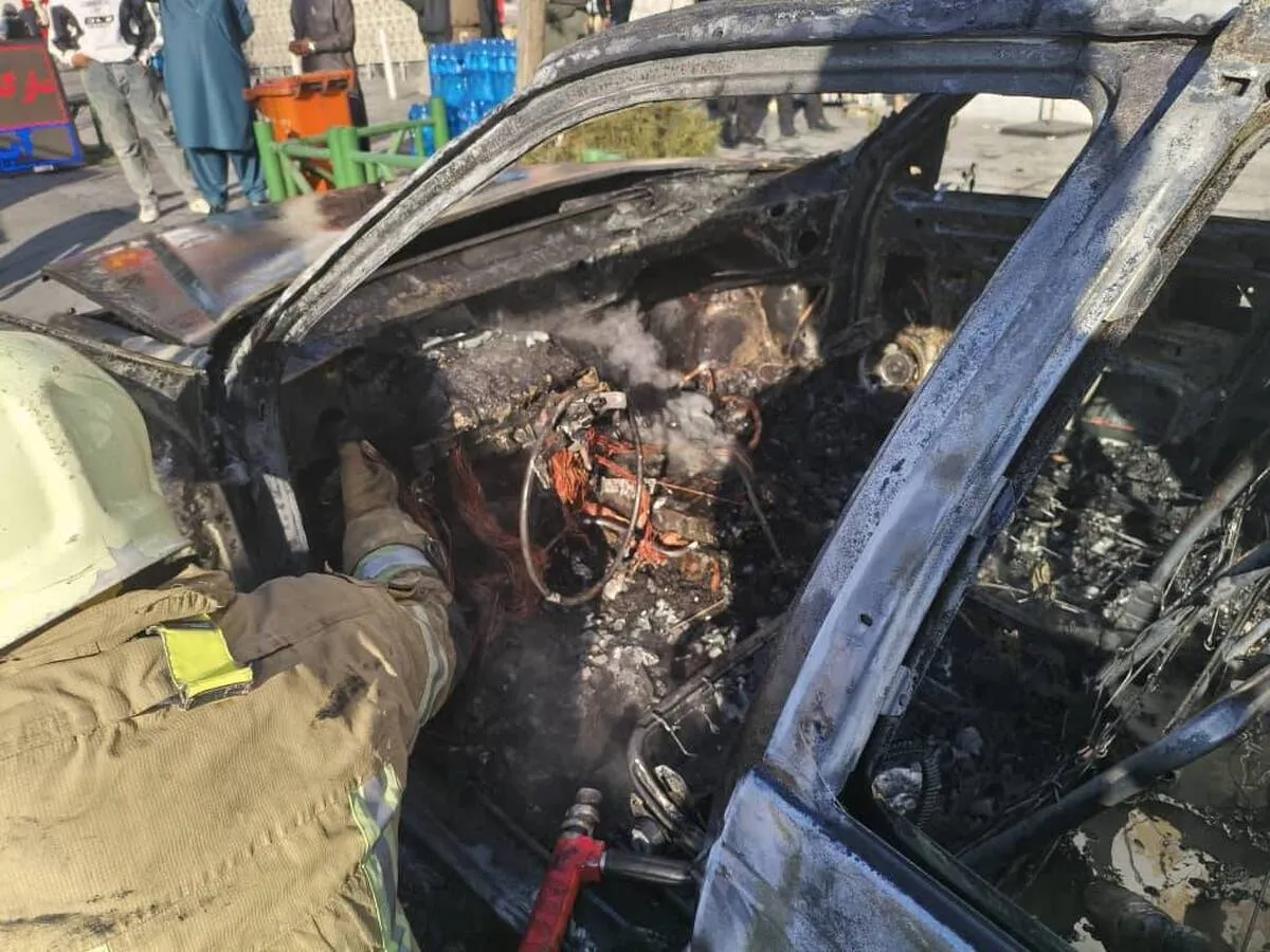 به گفته ملکی، آتشنشانان در محل مشاهده کردند یک خودروی پرشیا که در کنار خیابان متوقف بود، بهطور کامل شعلهور شده است. مالک خودرو که در محل حضور داشت، اظهار کرده بود ابتدا دود از داشبورد خارج شده و پس از باز کردن درِ خودرو، با رسیدن اکسیژن شعلهوری شدید رخ داده است.