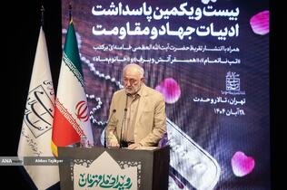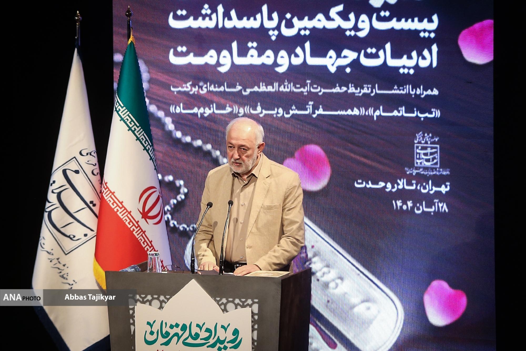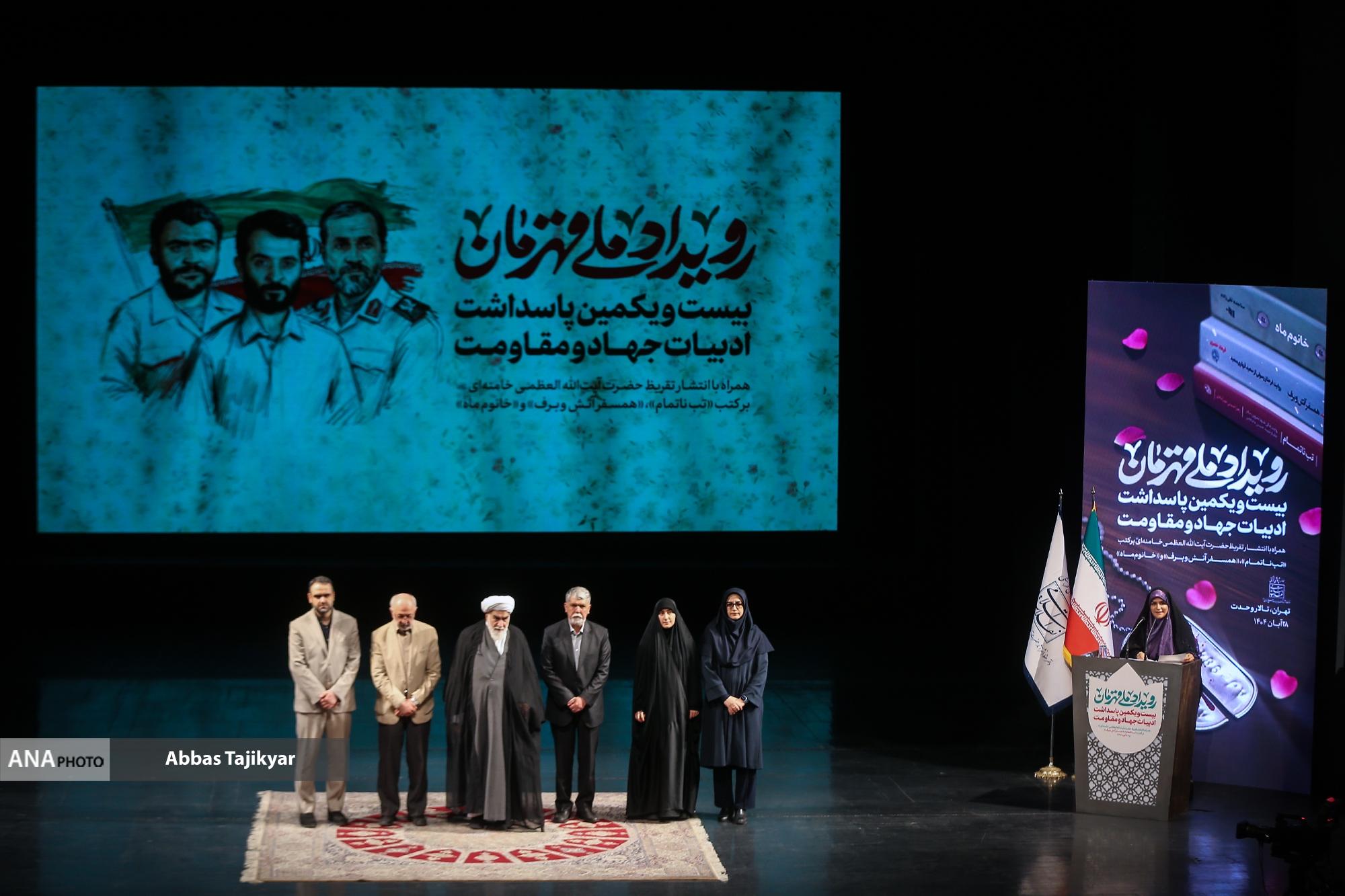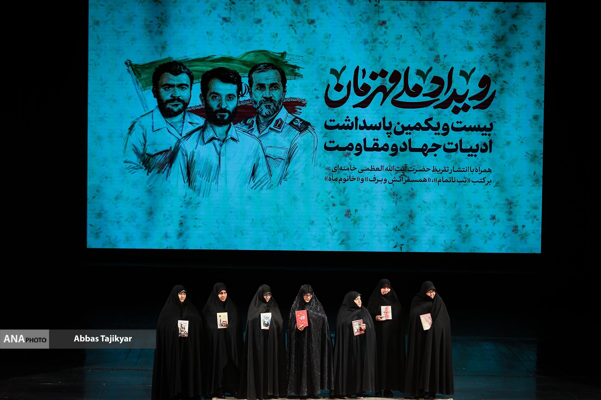 بیست و یکمین پاسداشت ادبیات جهاد و مقاومت «رویداد ملی قهرمان» صبح امروز همراه با انتشار تقریظ حضرت آیت الله العظمی خامنه ای بر کتب تب ناتمام، همسفر آتش و برف و خانوم ماه با حضور حجت الاسلام گلپایگانی رییس دفتر مقام معظم رهبری و سیدعباس صالحی وزیر فرهنگ و ارشاد اسلامی در تالار وحدت برگزار شد.