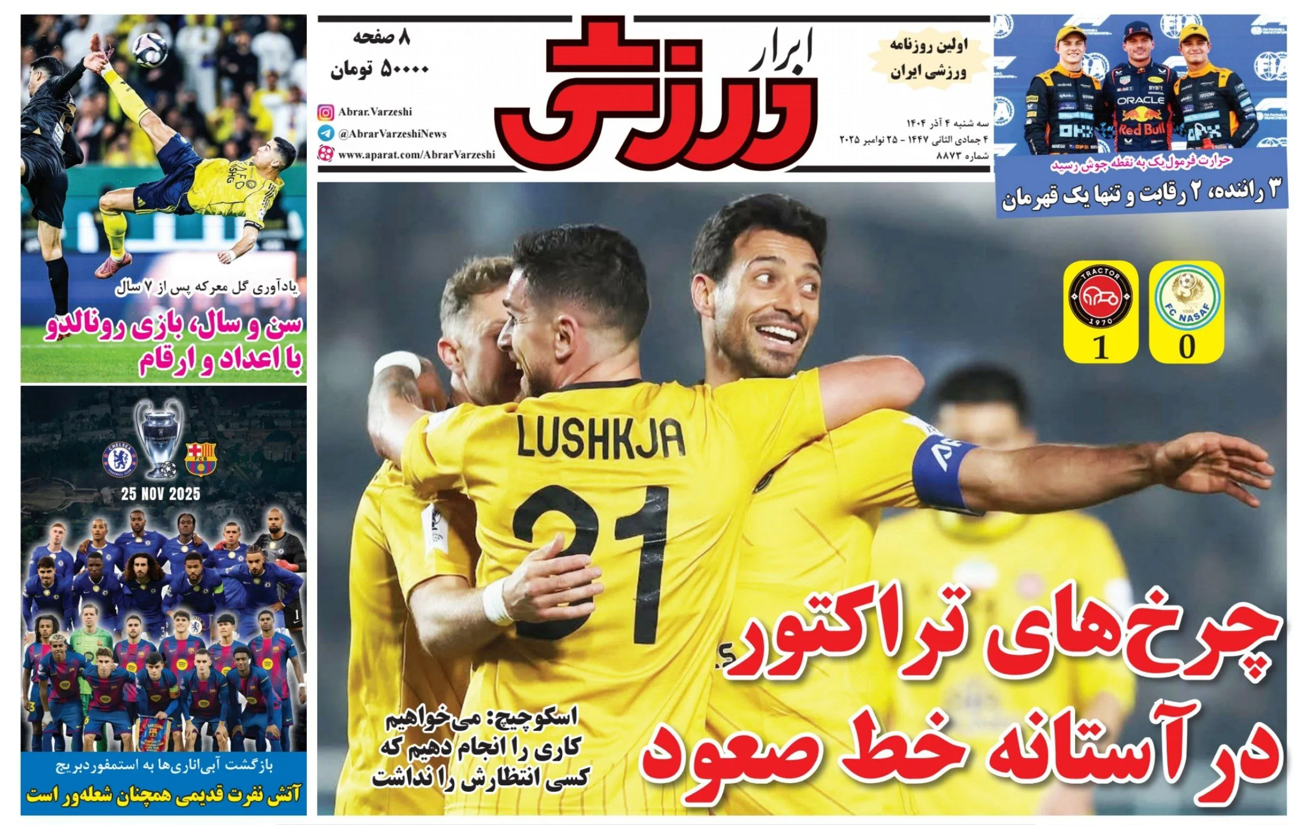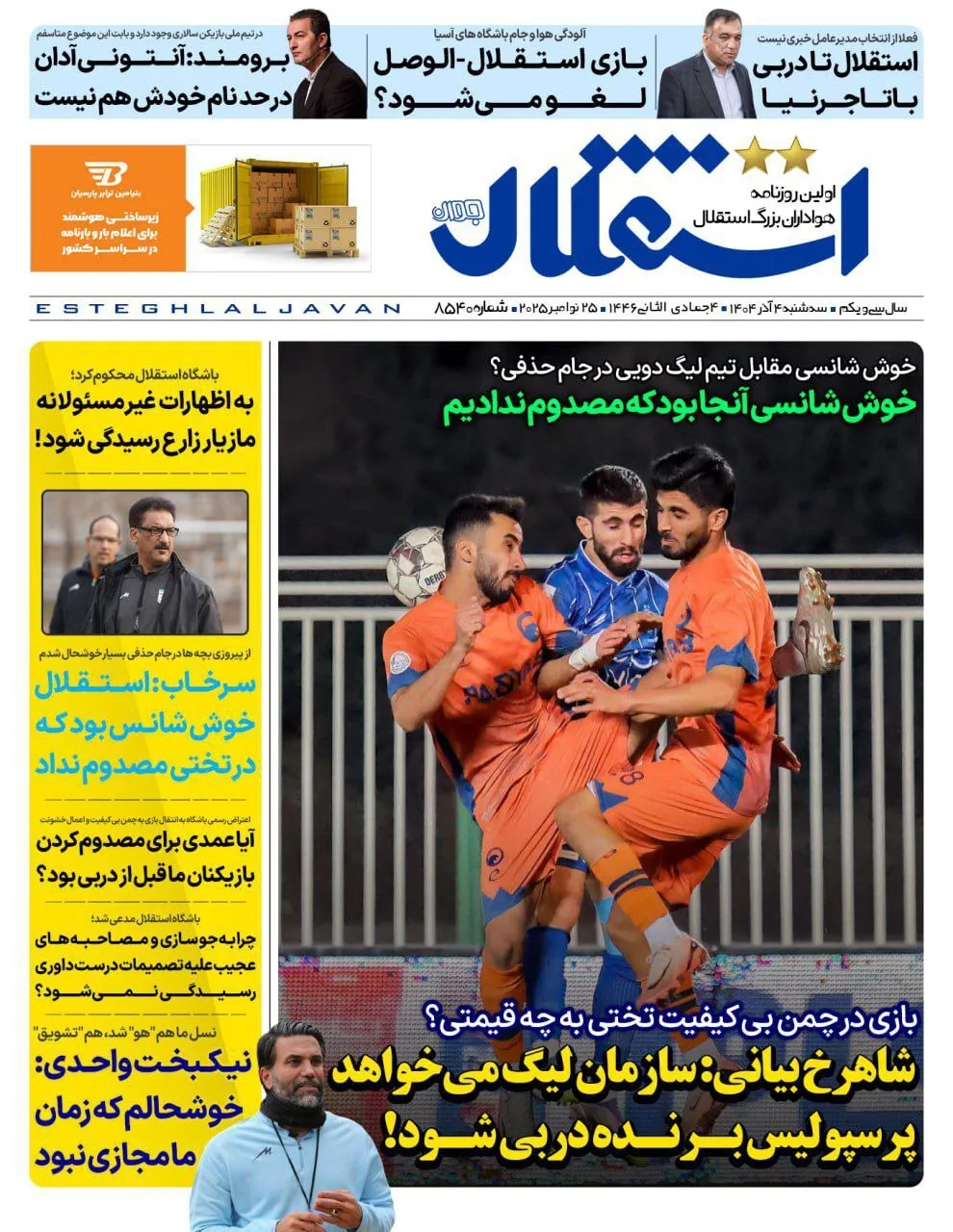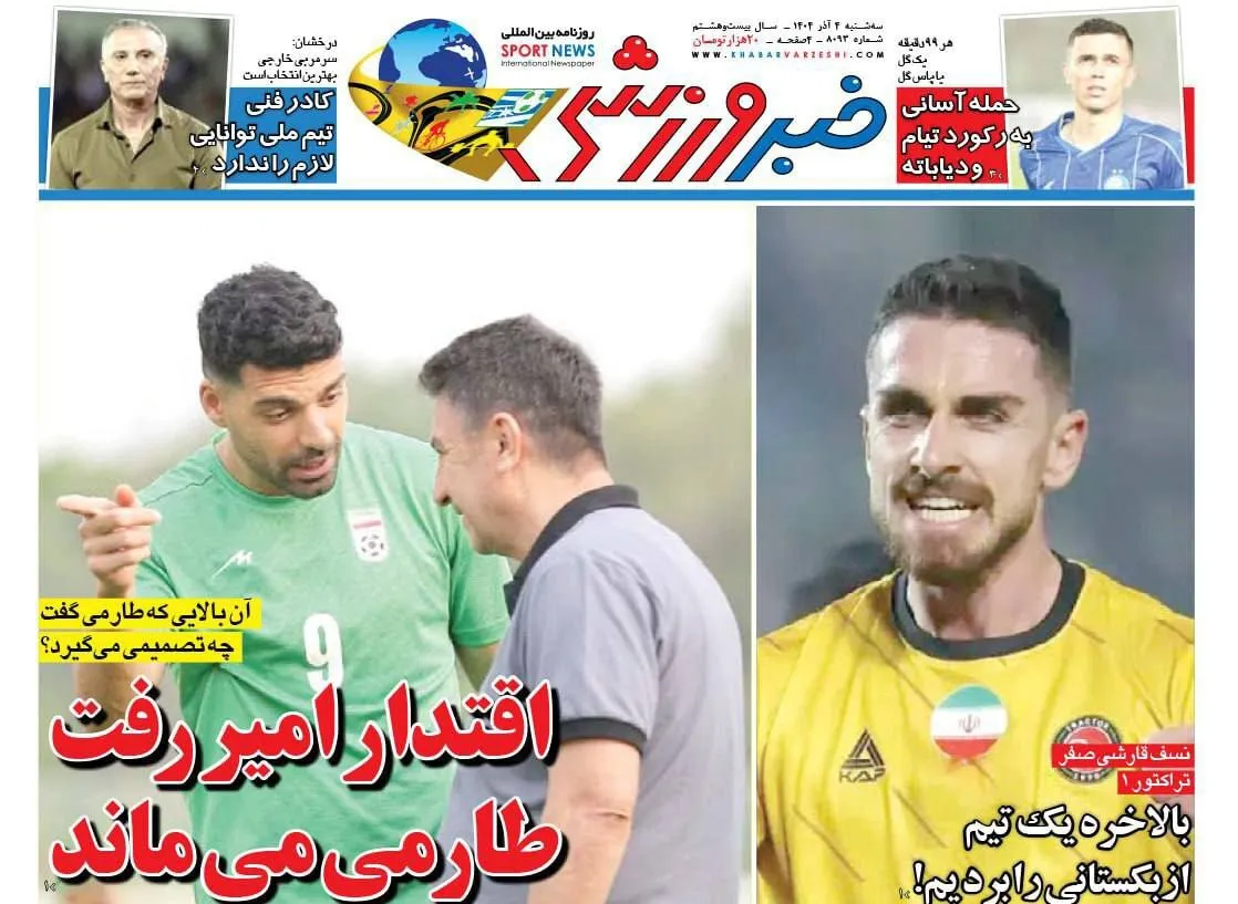 روزنامههای ورزشی سه شنبه 4 آذر ماه ۱۴۰۴