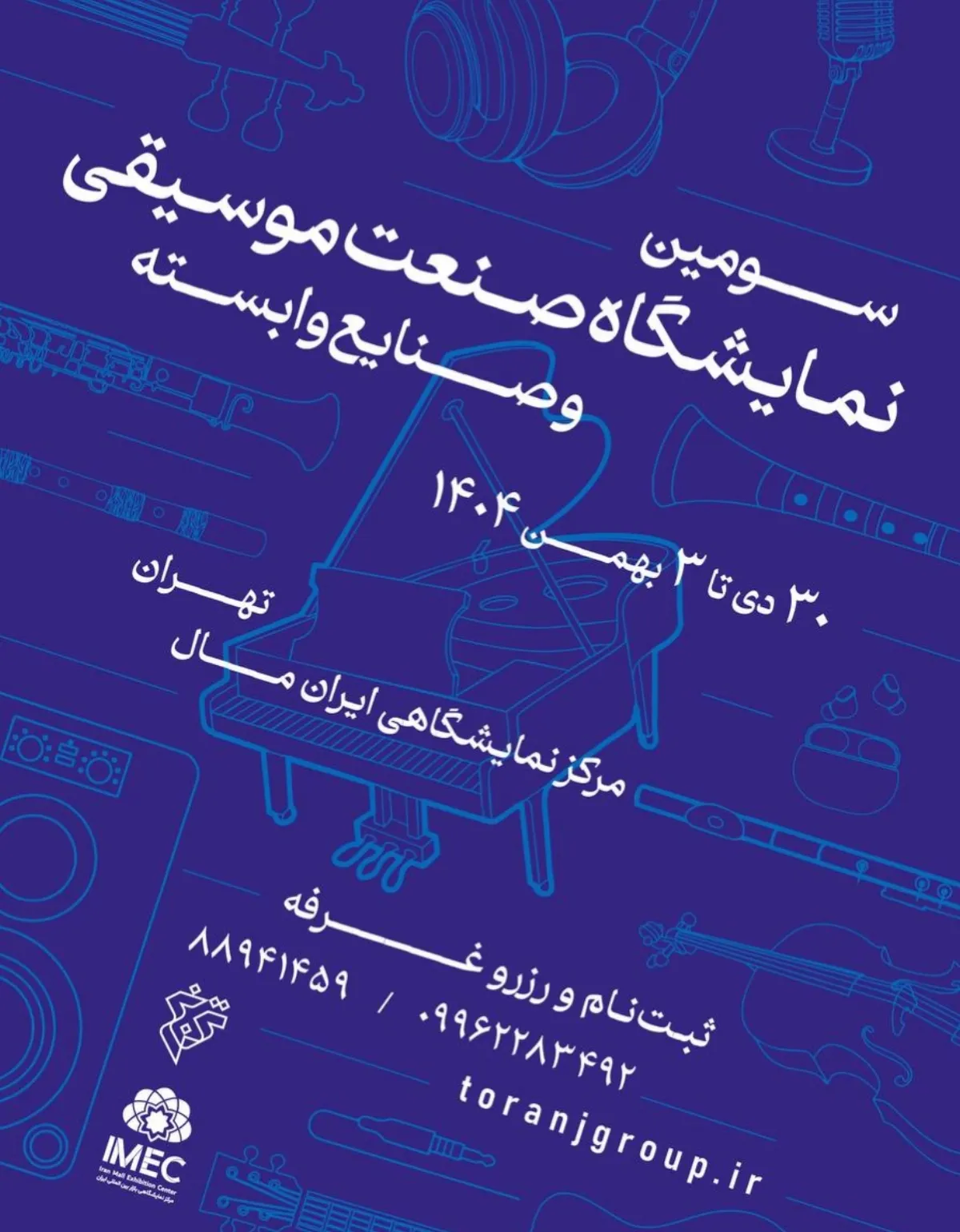 سومین نمایشگاه صنعت موسیقی ایران از ۳۰ دی تا ۳ بهمن ۱۴۰۴ در مرکز نمایشگاهی ایران‌مال برگزار خواهد شد و بر اساس اعلام دبیرخانه، این دوره با برنامه‌های جانبی تخصصی، نشست‌ها، کارگاه‌ها و رویداد‌های مرتبط همراه خواهد بود.