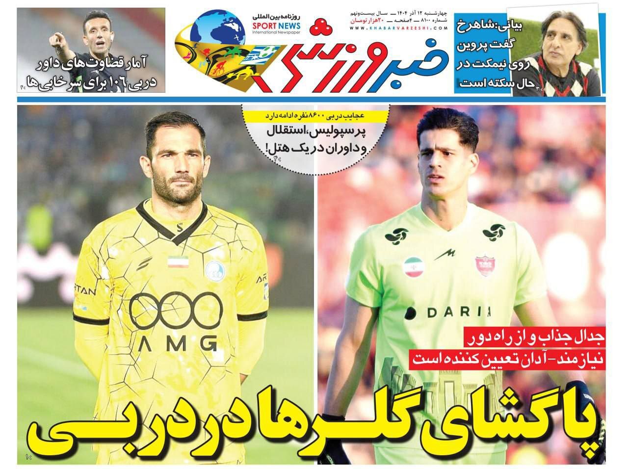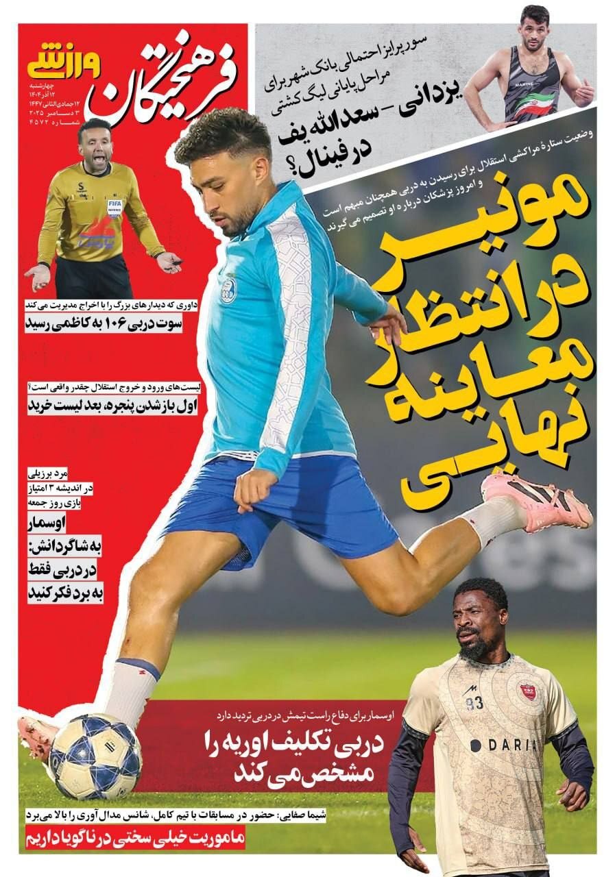 روزنامه‌های ورزشی چهارشنبه 12 آذر ماه ۱۴۰۴