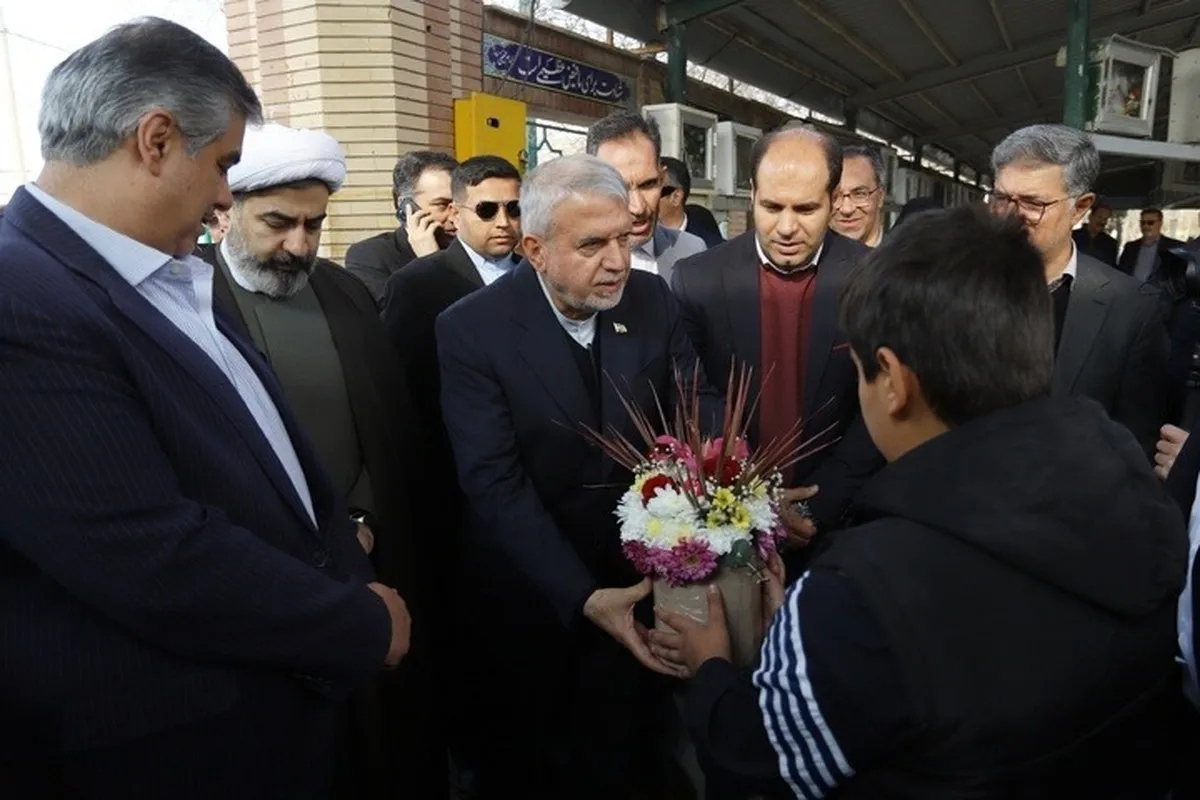 در آیین استقبال رسمی، فرزند شهید صباغی از شهدای جنگ ۱۲روزه با اهدای گل از وزیر استقبال کرد.