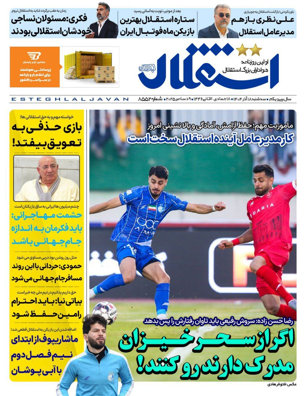 روزنامههای ورزشی سه شنبه 18 آذر ماه ۱۴۰۴