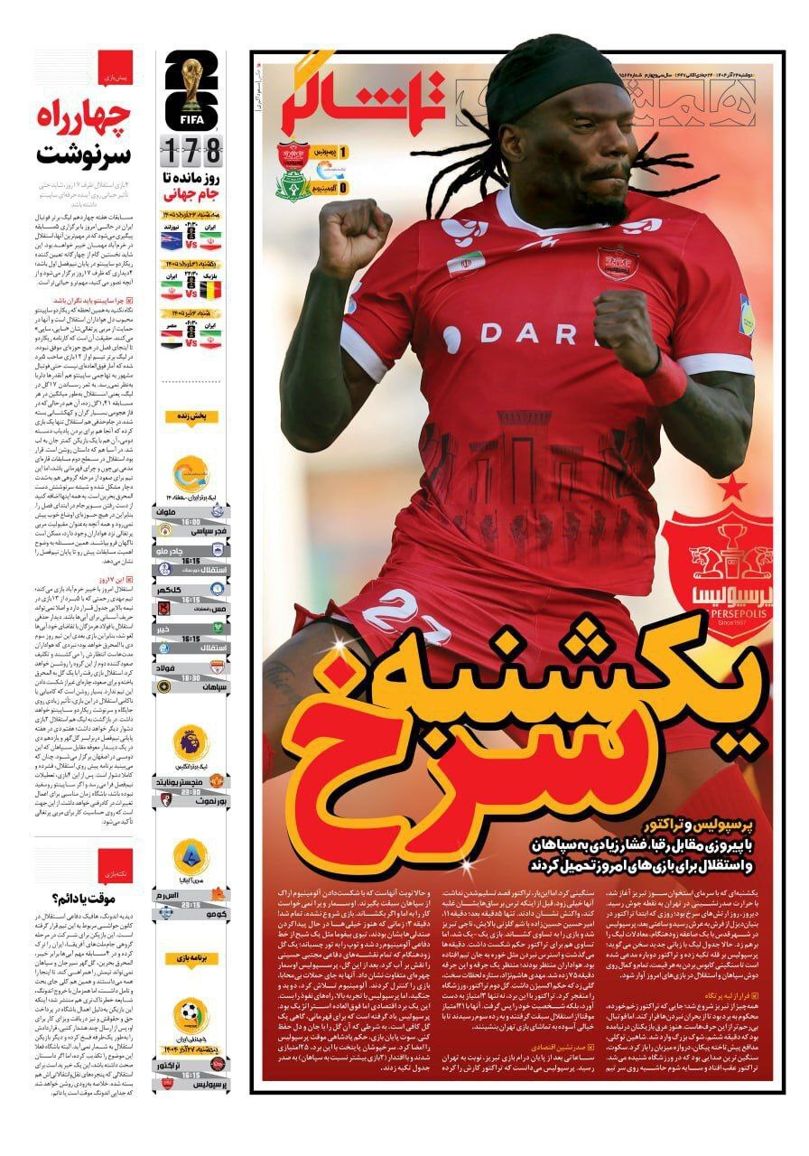 پیشخوان روزنامه های ورزشی دوشنبه 24 آذر ماه ۱۴۰۴ را مشاهده کنید.