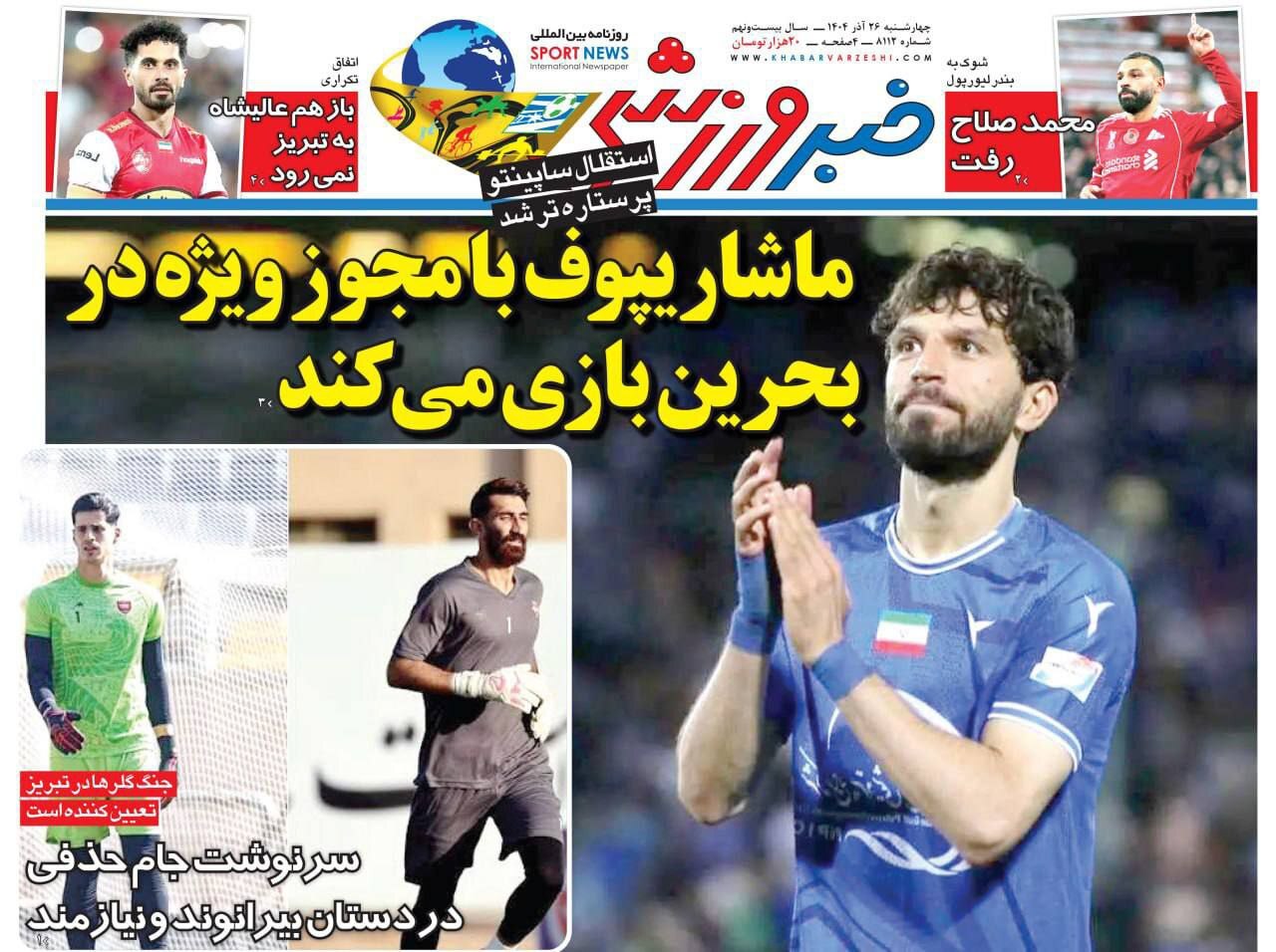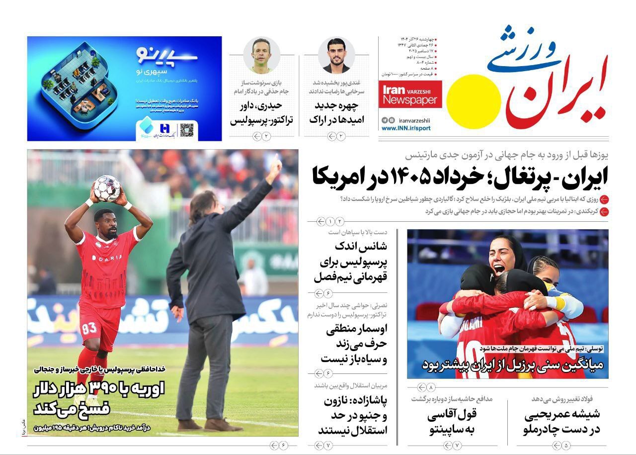 روزنامههای ورزشی چهارشنبه ۲۶ آذر ۱۴۰۴