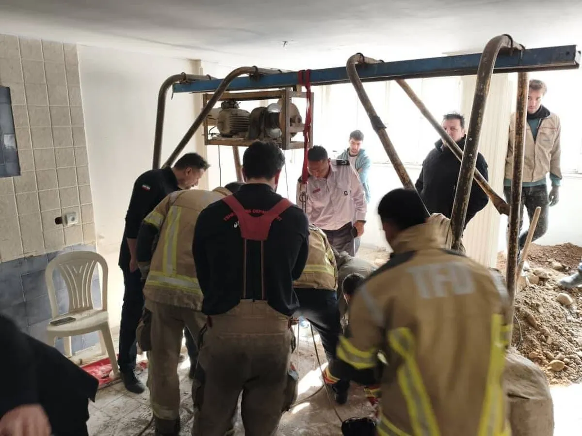 نجات ۲ کارگر گرفتار در چاه ۲۵ متری ساختمان مسکونی در بلوار آفریقا+فیلم