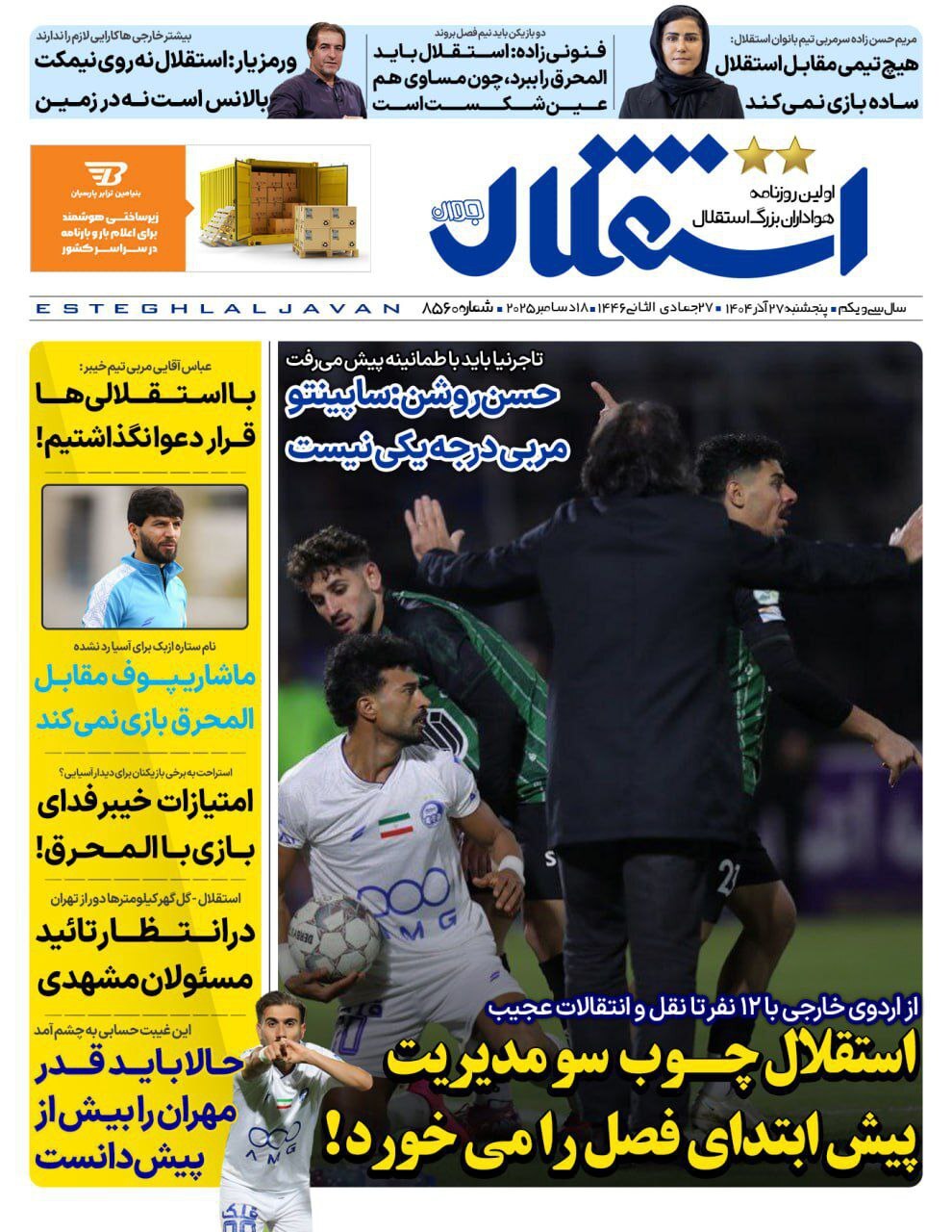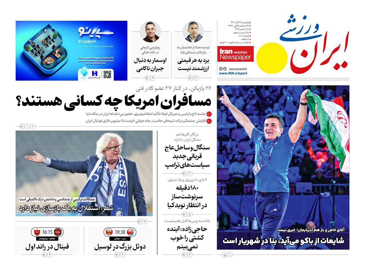 روزنامههای ورزشی پنجشنبه 27 آذر ماه ۱۴۰۴