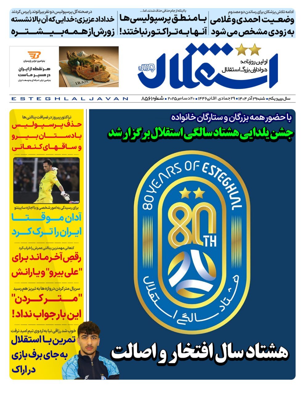روزنامههای ورزشی شنبه ۲۹ آذر ماه ۱۴۰۴