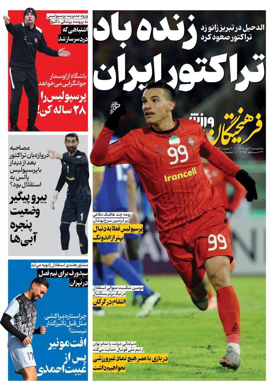 روزنامههای ورزشی سه شنبه دوم دی ماه ۱۴۰۴