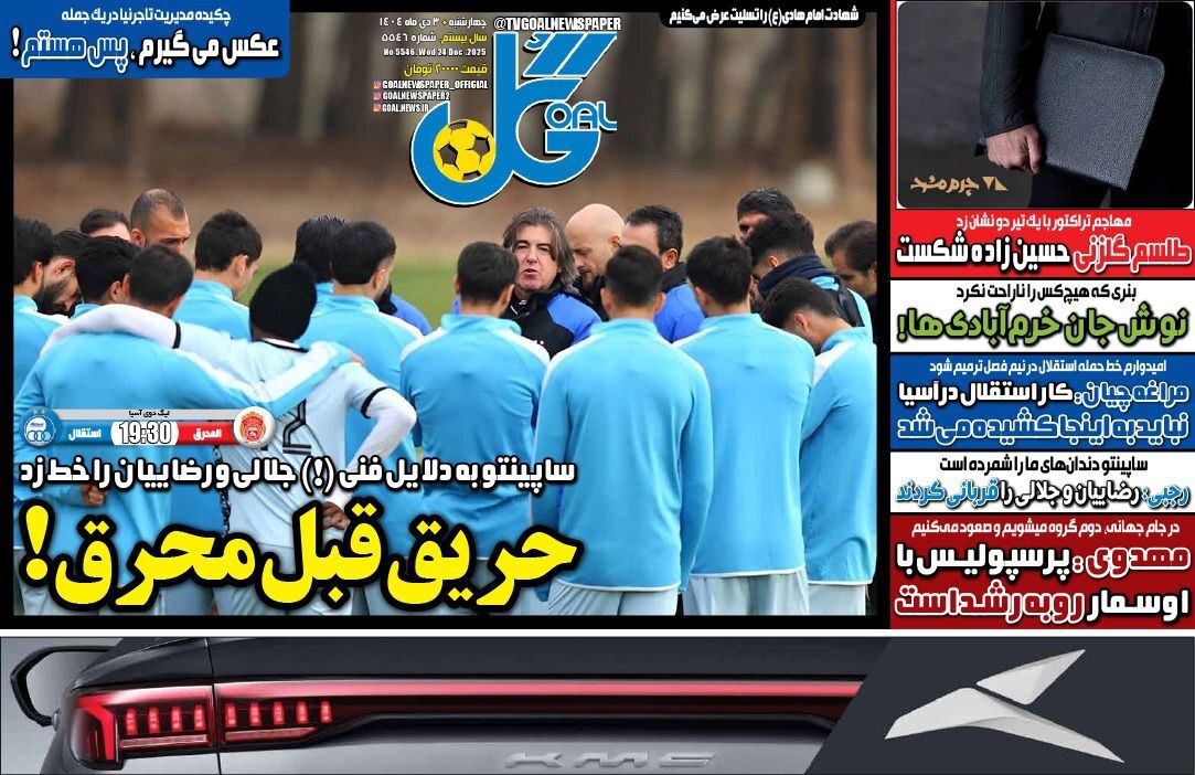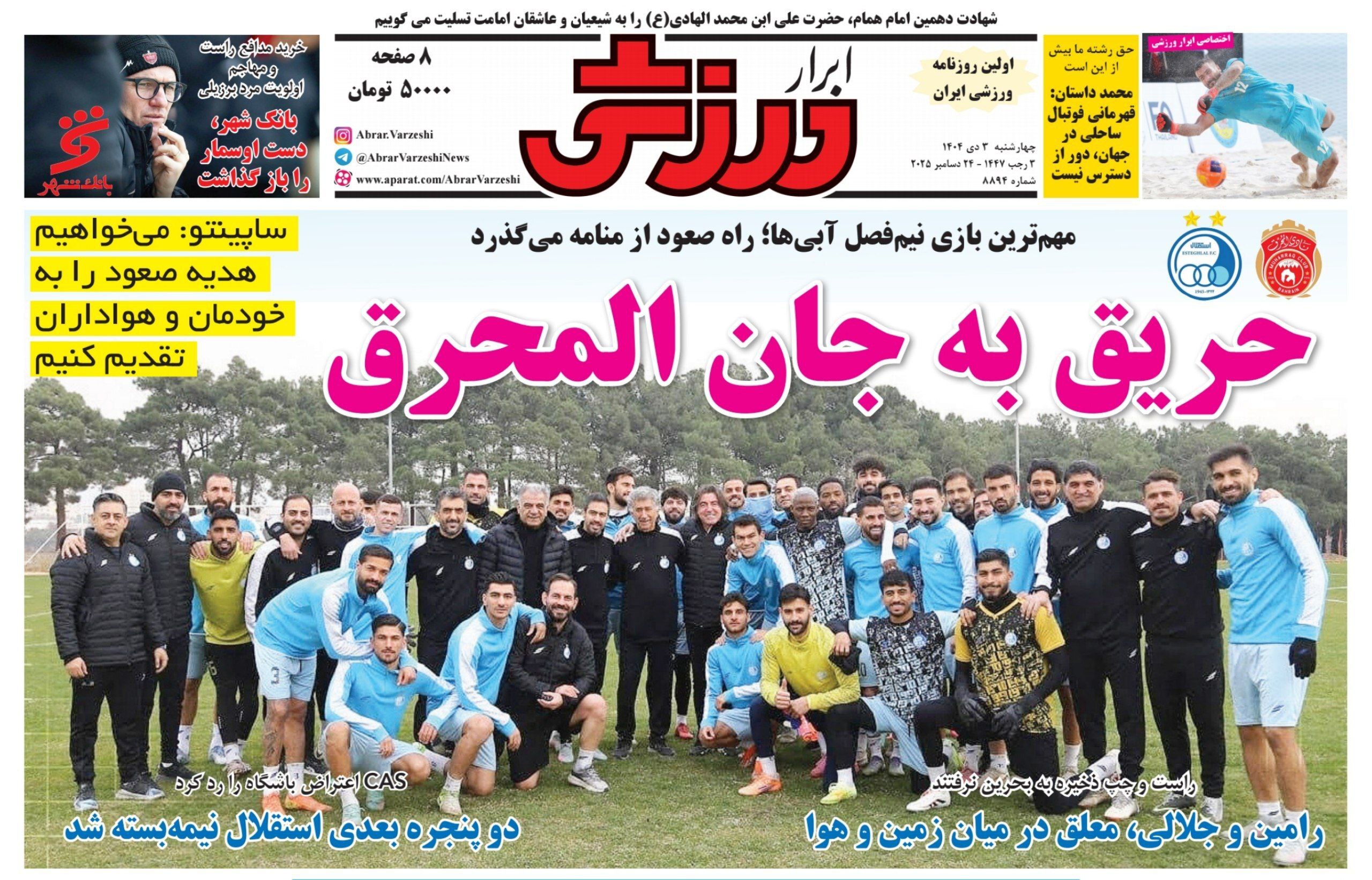 روزنامه های ورزشی چهارشنبه سوم دی ماه ۱۴۰۴